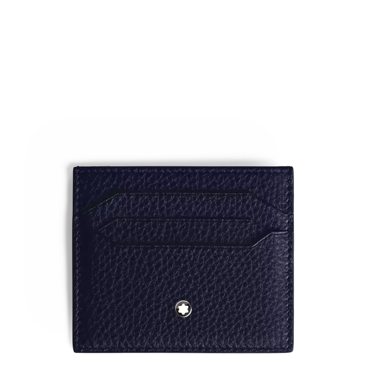 Denna eleganta korthållare, tillverkad i elegant midnattsblått kornigt läder, är ett smart sätt att ge din vardag en touch av lyx. Den kompakta designen glider enkelt ner i fickan och rymmer sex kreditkort samt ett extra fack för små nödvändigheter.