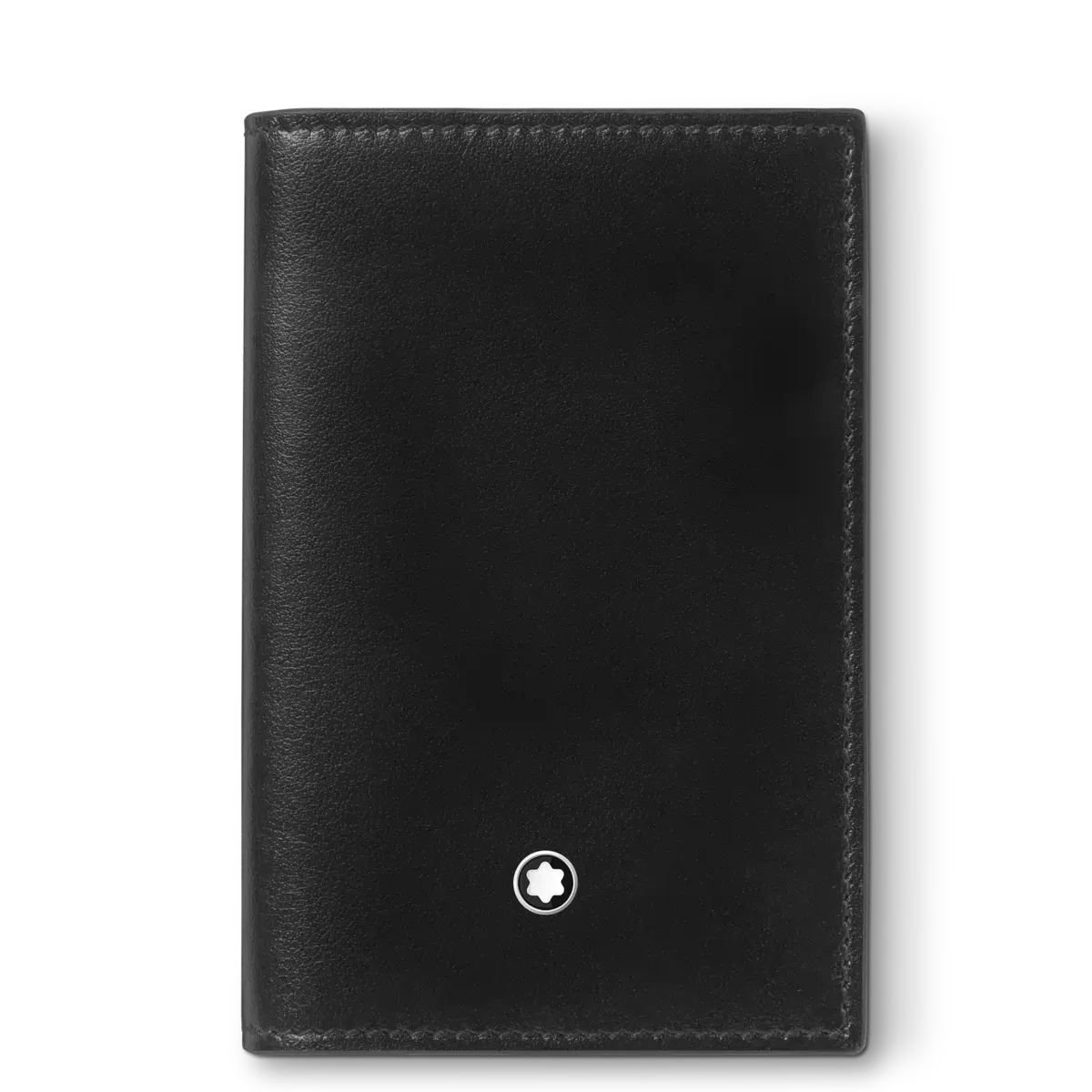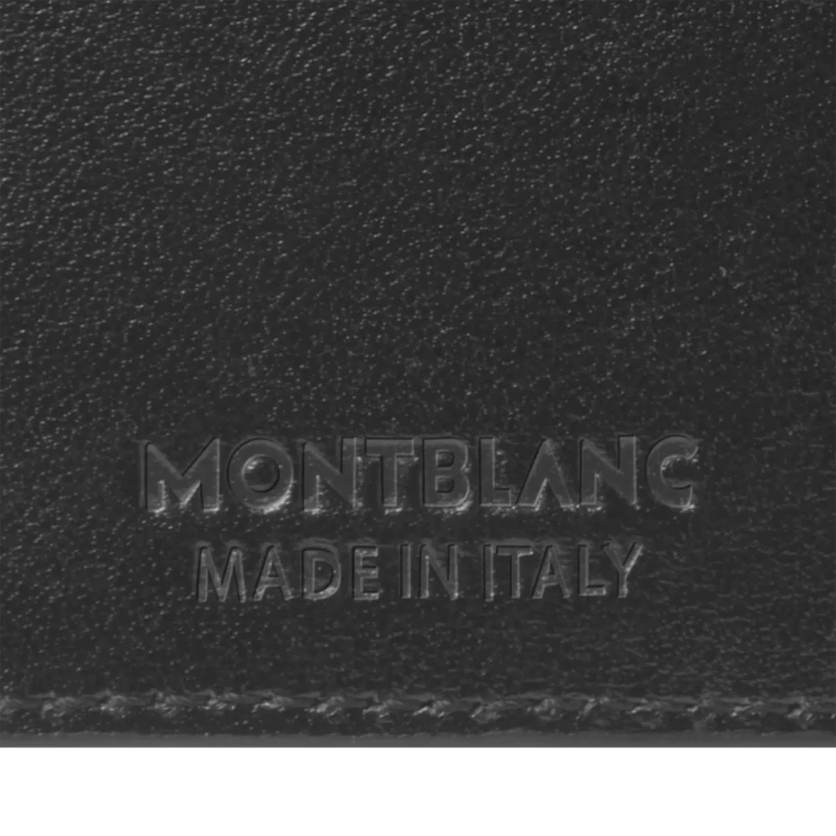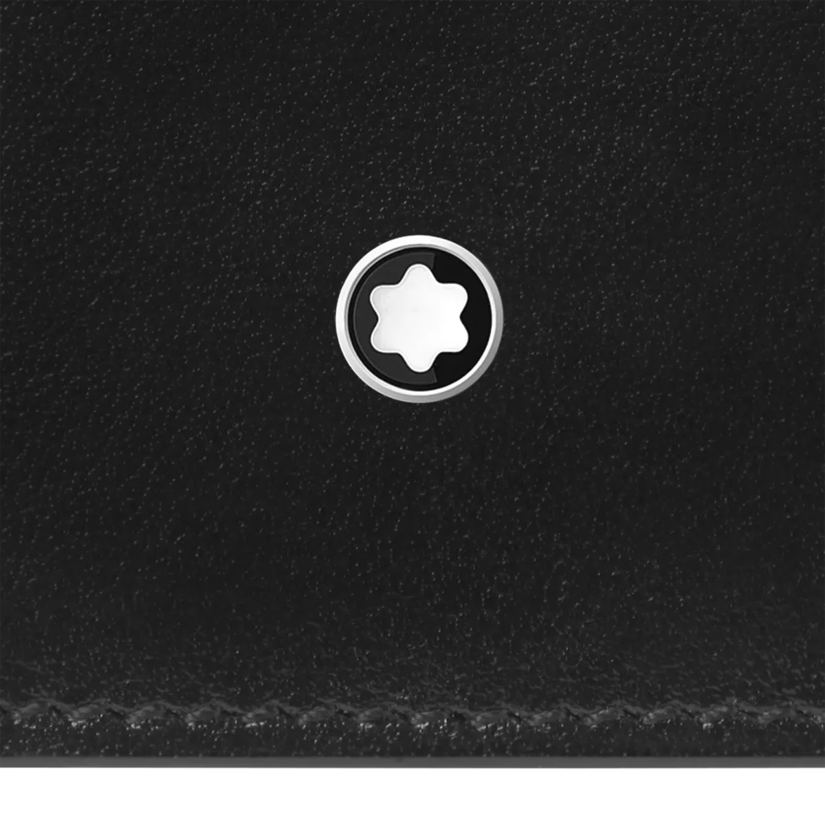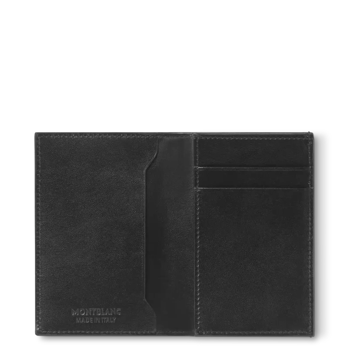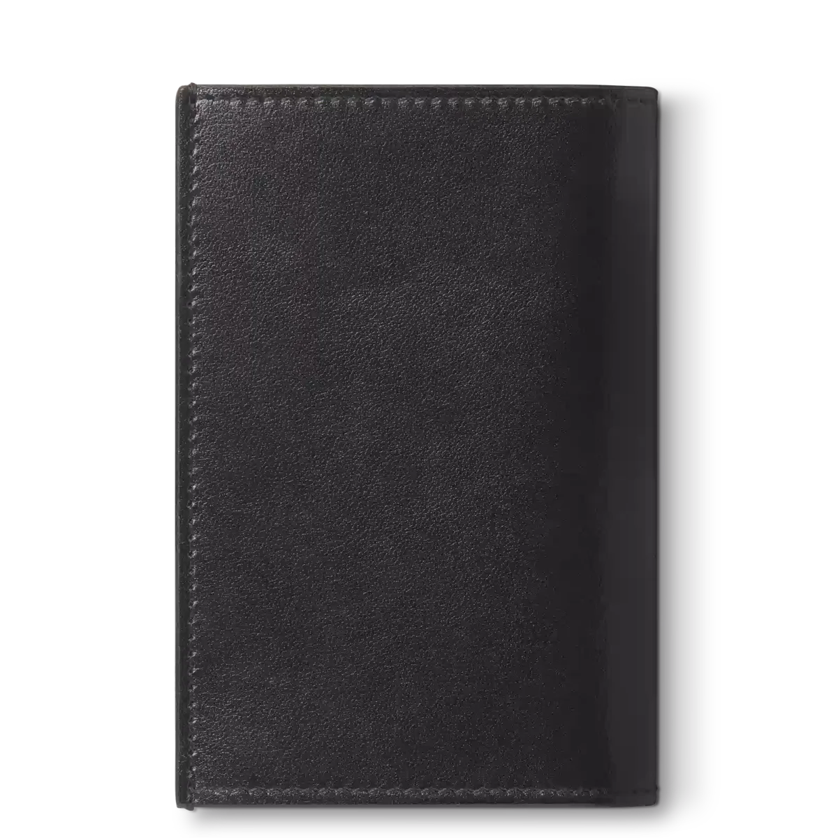 Denna eleganta visitkortshållare är tillverkad av mjukt svart läder och har plats för två kreditkort i särskilda fack samt ett rymligt fack för visitkort. Det finns även två extra fickor för vikta sedlar eller kvitton. Den är fodrad med svart tyg och prydd med Montblanc-emblemet.