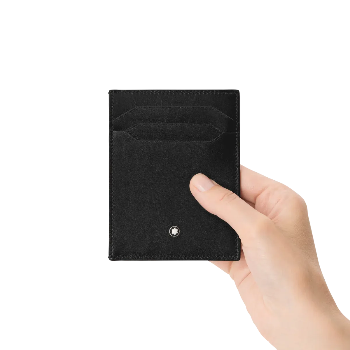 Denna Meisterstück-kortficka är tillverkad av mjukt läder och fodrad med svart tyg. Den kombinerar klassisk Montblanc-design med optimal funktionalitet och har fyra kreditkortsfack, tre extra fickor för vikta sedlar eller kvitton samt en mycket praktisk avtagbar ficka som gör det enkelt att se personliga ID-kort. Den är försedd med Montblanc-emblemet.