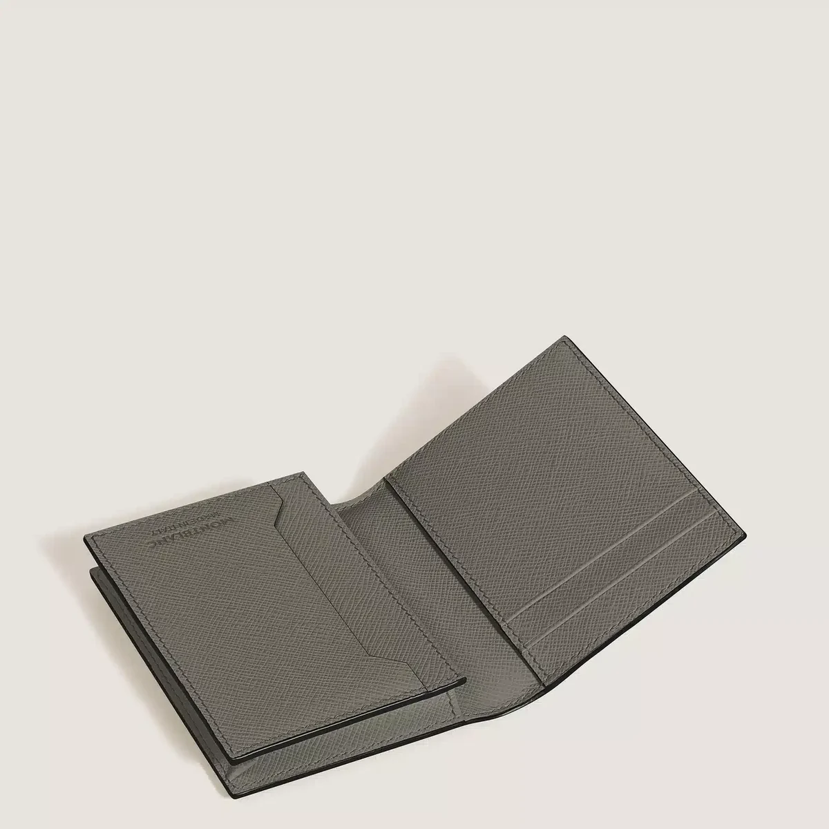 Trots sin kompakta storlek är denna läderkortshållare en verkligt mångsidig följeslagare med funktionella detaljer både på utsidan och insidan. Inuti finns tre kreditkortsfack och ett visitkortsfack samt ett extra fack. Tillverkad i Saffiano-tryckt läder i mellangrått, med ett extra fack för ett fjärde kreditkort på utsidan.