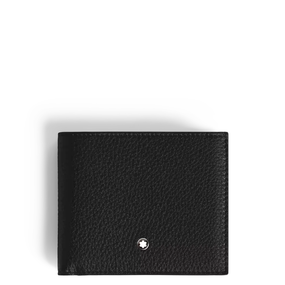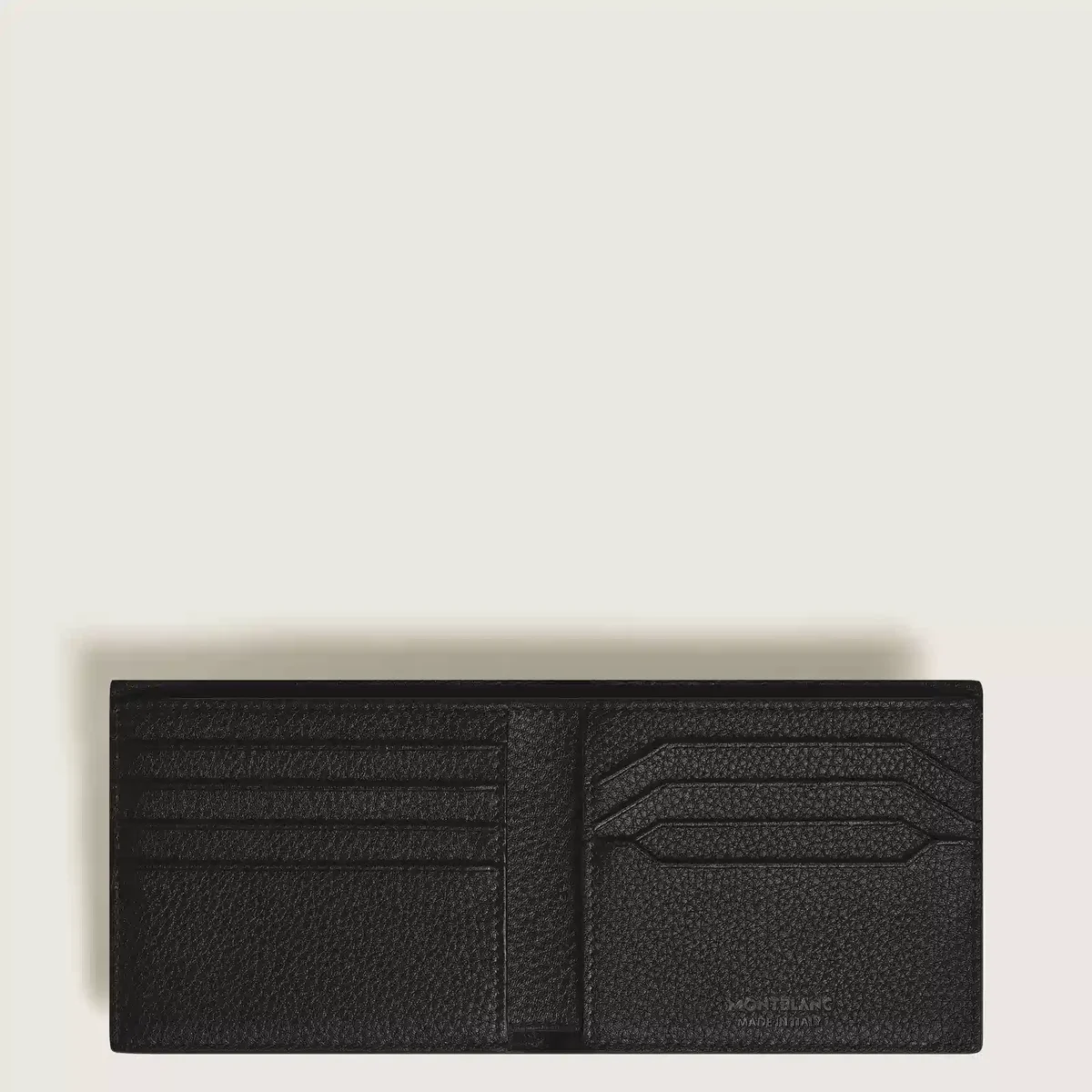 Möt plånboken 8cc: en fusion av tidlös elegans och modern stil. Det ikoniska Montblanc-emblemet, omgivet av en palladiumring, glänser mot det mjuka svarta korniga lädret. Med plats för 8 kreditkort, två sedelfack och ett par extra fickor är den mer än bara en plånbok – den är ett statement.