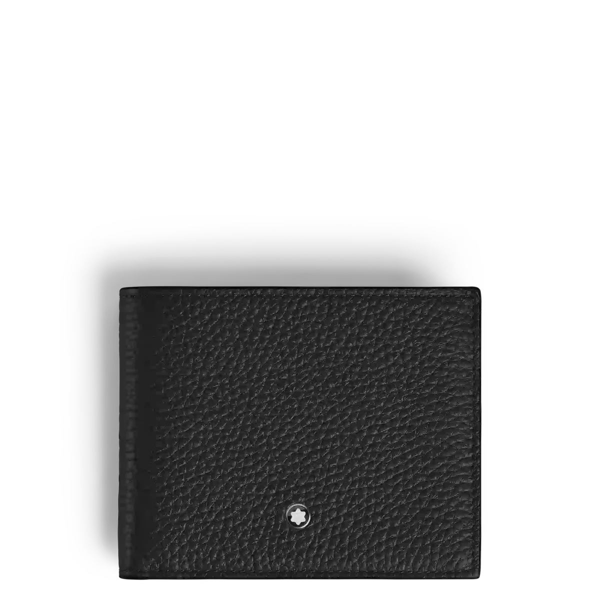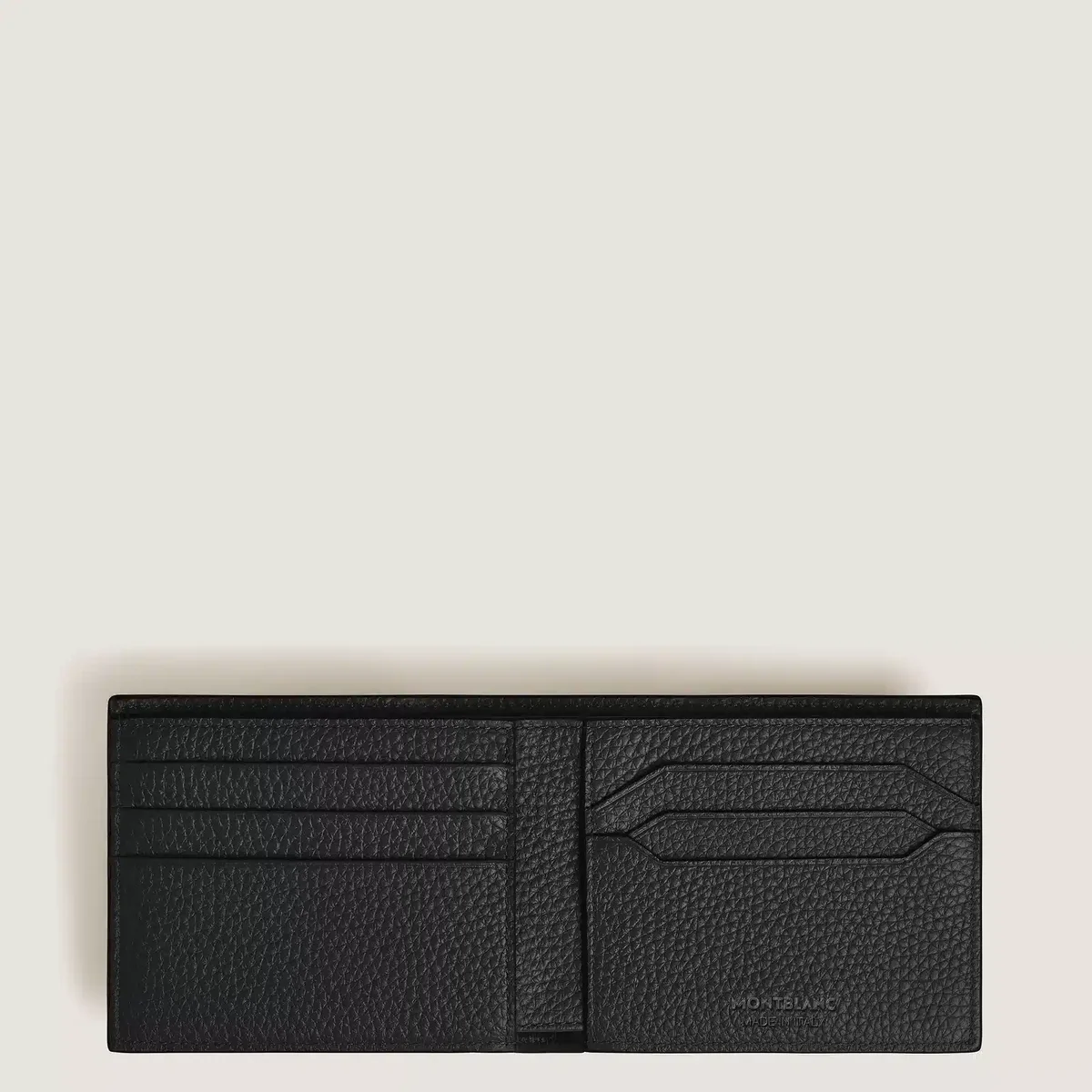 Denna klassiska, smala och sofistikerade plånbok i svart premiumkornat läder är ett elegant val för vardagsbruk. Den är genomtänkt designad och har sex kreditkortsfack, två fack för sedlar och två extra fickor för kvitton. Den är fodrad med svart tyg och avslutas med det ikoniska Montblanc-emblemet, vilket kombinerar praktisk funktion med tidlös stil.