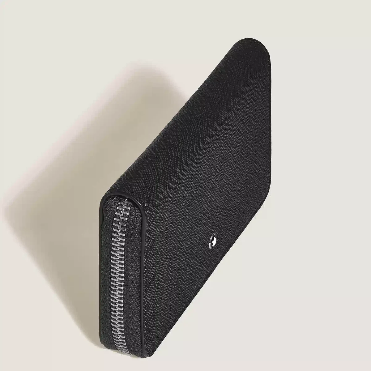 Denna funktionella plånbok med dragkedja kombinerar tidlös stil med praktisk funktionalitet. Den är tillverkad av präglat sartorial-läder i klassiskt svart och har en distinkt metalldragkedja i form av en pennspets, som en hyllning till Montblancs skrivararv. Inuti har plånboken 12 kreditkortsfack, ett säkert myntfack med dragkedja och tre extra fickor för kvitton eller andra nödvändigheter.
