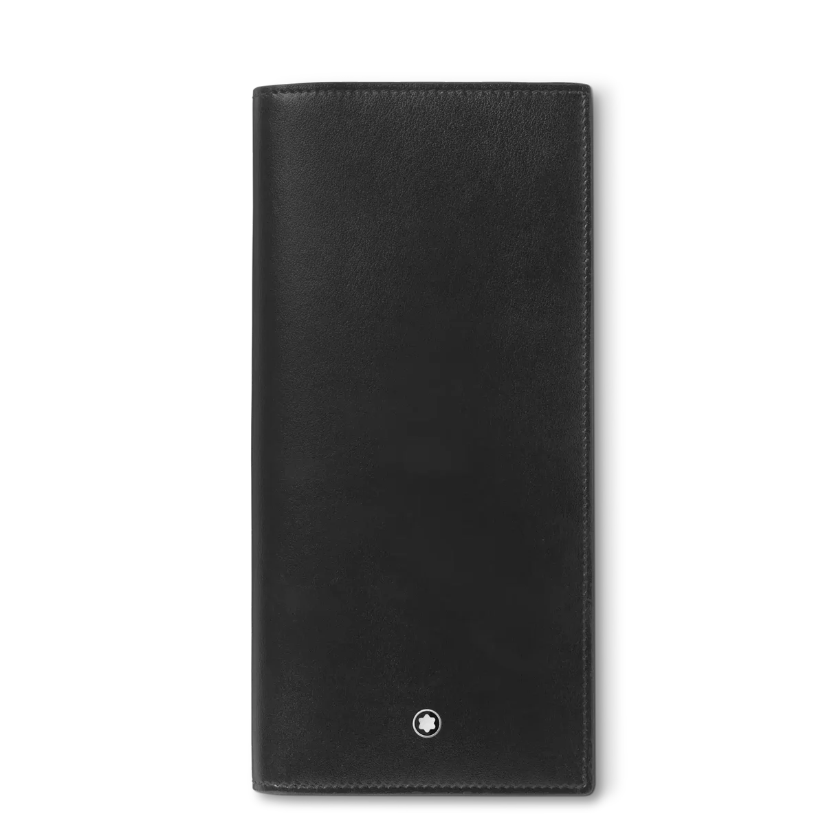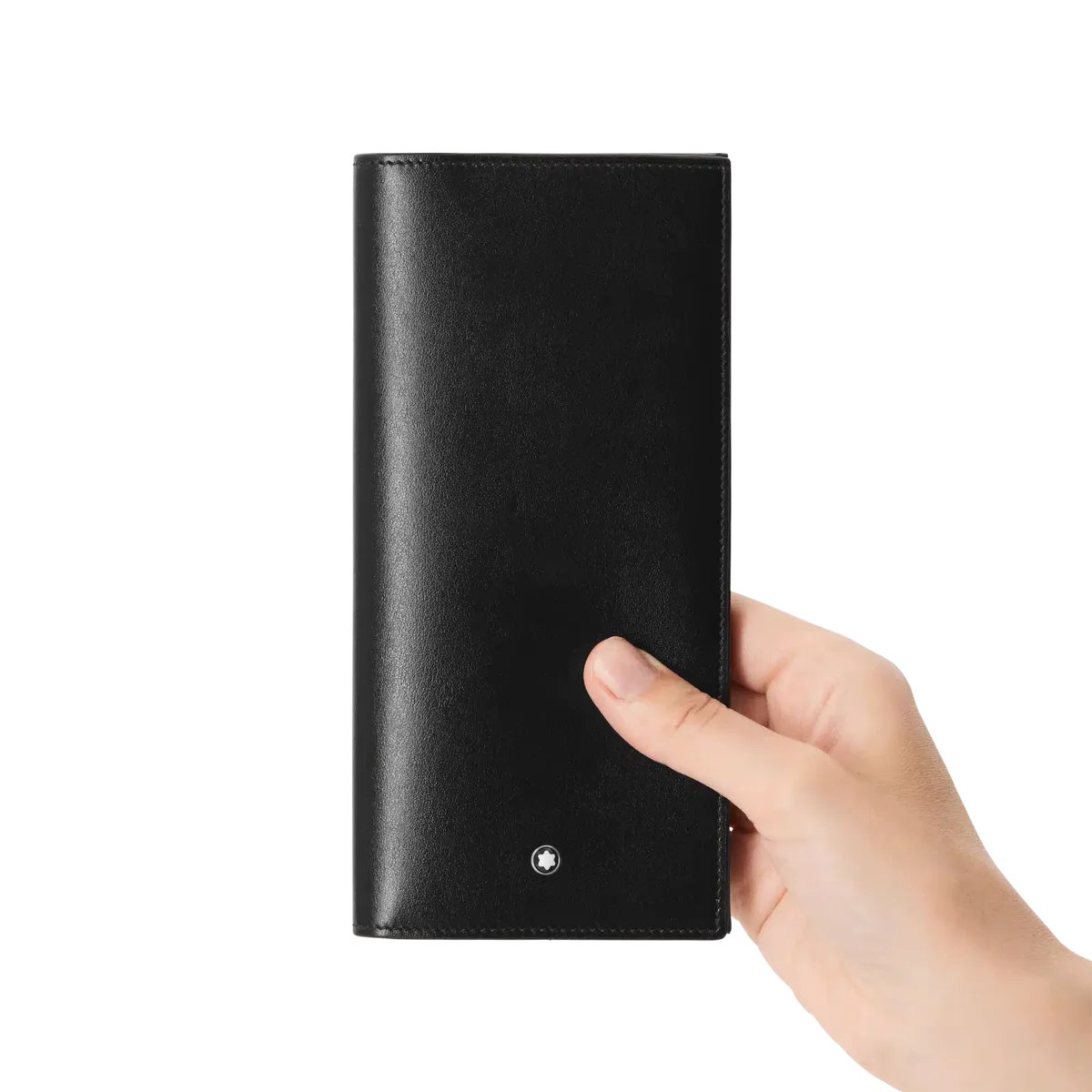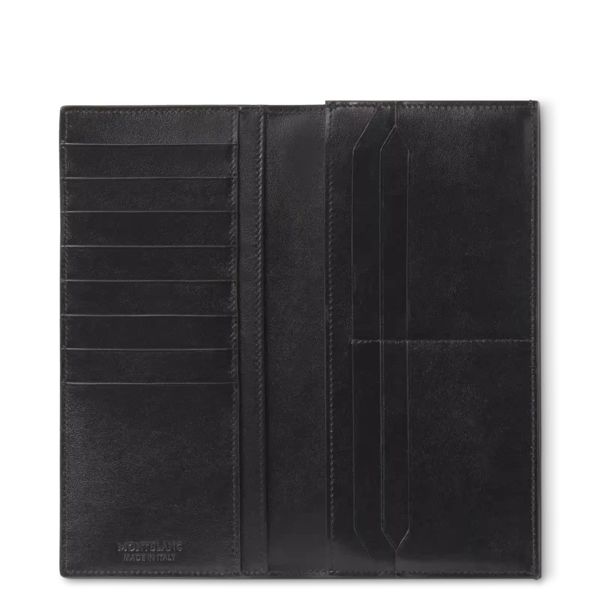 Meisterstück 14cc är en elegant plånbok designad med funktionalitet i åtanke. Den har ett stort fack med dragkedja för att säkert förvara mynt eller andra nödvändigheter och rymmer 14 kreditkort i särskilda fack. Den sofistikerade plånboken har också två fack för sedlar och två extra fickor för kvitton. Den är tillverkad av mjukt läder, fodrad med svart tyg och avslutad med Montblanc-emblemet.