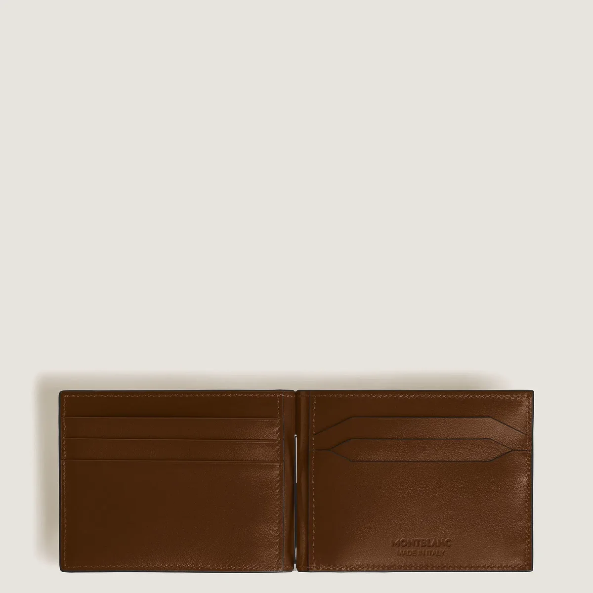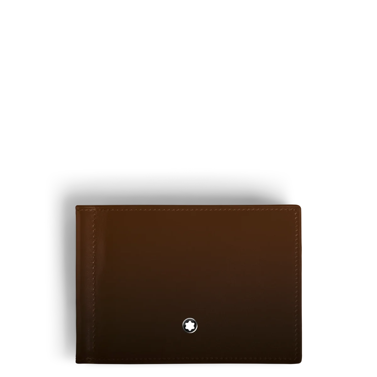 Denna smala bifoldplånbok är en ny tolkning av en traditionell design med en exklusiv touch. Den är tillverkad av mjukt brunt Meisterstück-läder med en handapplicerad sfumato-effekt och har en elegant metallklämma för sedlar och sex kreditkortsfack, vilket gör den till en snygg och praktisk plånbok för den kräsne användaren.