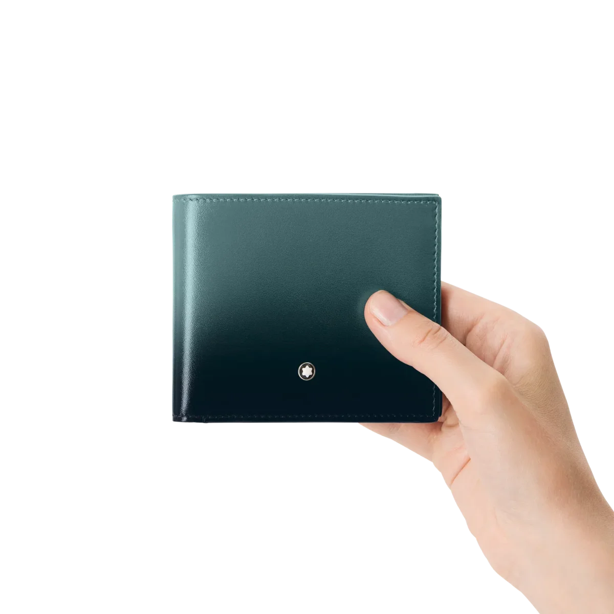 Vi presenterar Meisterstück-plånboken, ett stilfullt och funktionellt tillbehör som står sig genom tiderna. Den är tillverkad av högkvalitativt brittiskt grönt läder och har en fantastisk sfumato-effekt som noggrant applicerats för hand. Plånboken ingår i en kapselkollektion som firar 100 år av Meisterstück-hantverk. Den öppnas i mitten och har särskilda fack för upp till sex kreditkort. De två rymliga facken för sedlar och kvitton, tillsammans med två extra fickor, erbjuder gott om förvaringsutrymme för alla dina viktiga saker. Med detta oumbärliga tillbehör förenklar du dina dagliga transaktioner och lyfter din stil utan ansträngning.