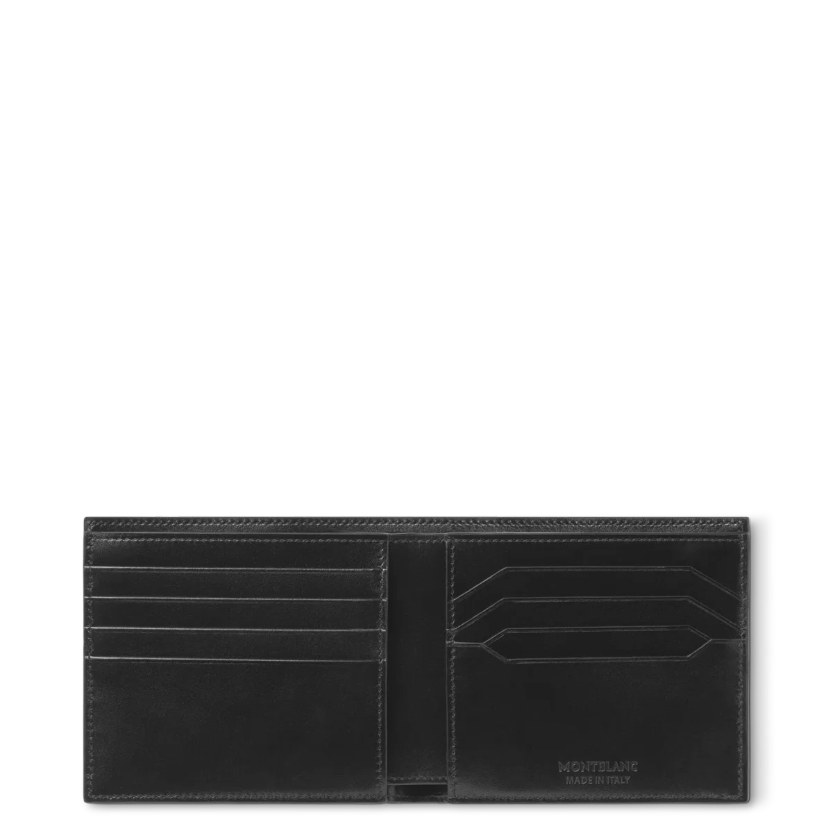Den eleganta Meisterstück 8cc är en smidig och kompakt plånbok med två fack som rymmer åtta kreditkort i särskilda fack, två fack för sedlar och ytterligare två fickor för kvitton eller små nödvändigheter. Den är tillverkad av det finaste läder, fodrad med svart tyg och avslutad med Montblanc-emblemet.