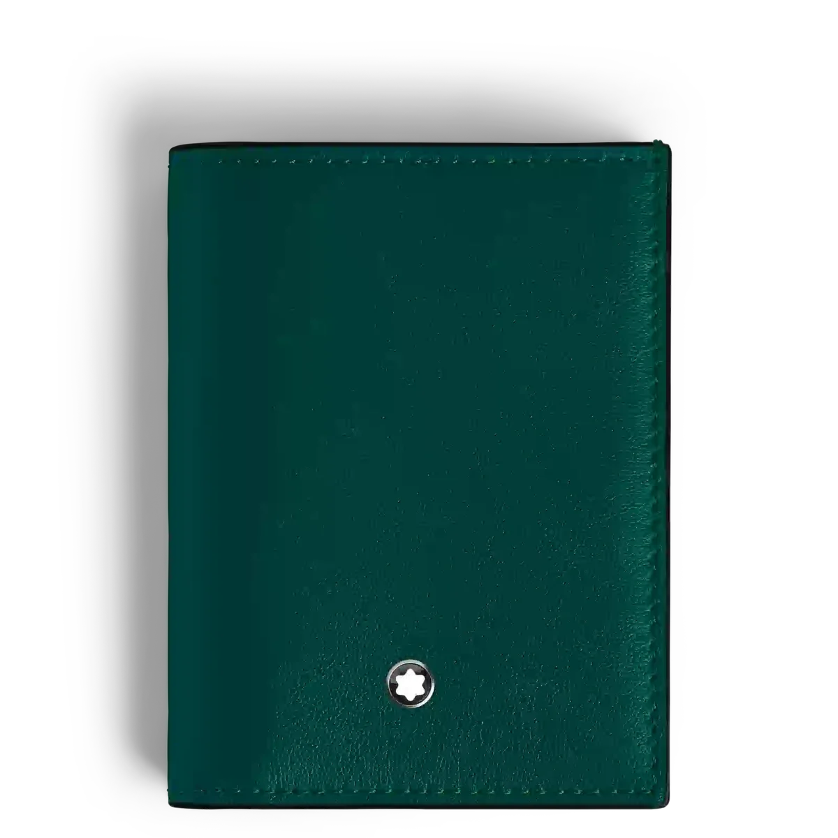 Denna kompakta och eleganta, lätta plånbok är den perfekta följeslagaren både till jobbet och på kvällen. Den klassiska bifold-designen har fyra kreditkortsfack, ett fack för sedlar och fyra extra fickor för extra förvaring. Den är tillverkad av mjukt kalvskinn i malakit och kompletteras med det ikoniska Montblanc-emblemet på framsidan.
