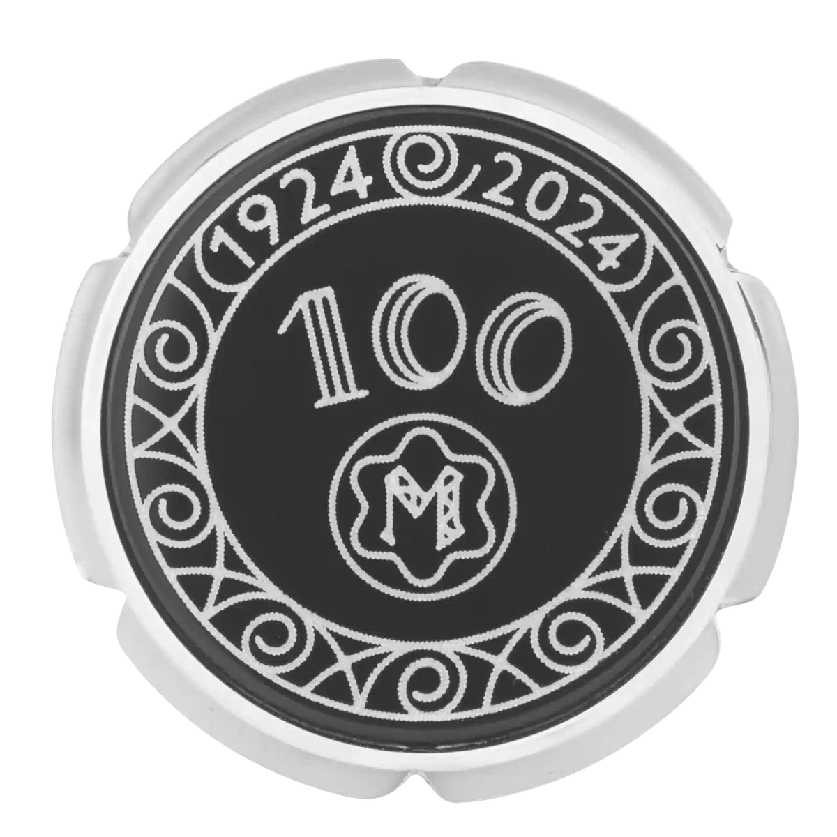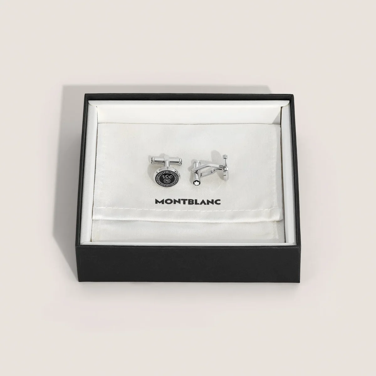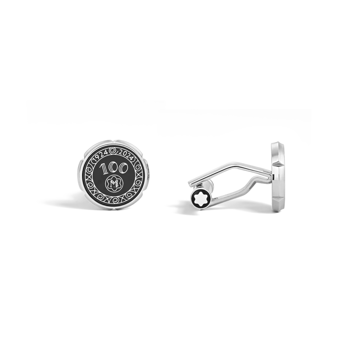 Manschettknappar i rostfritt stål med Meisterstück 100-årsjubileumsdekor i svart lackinläggning