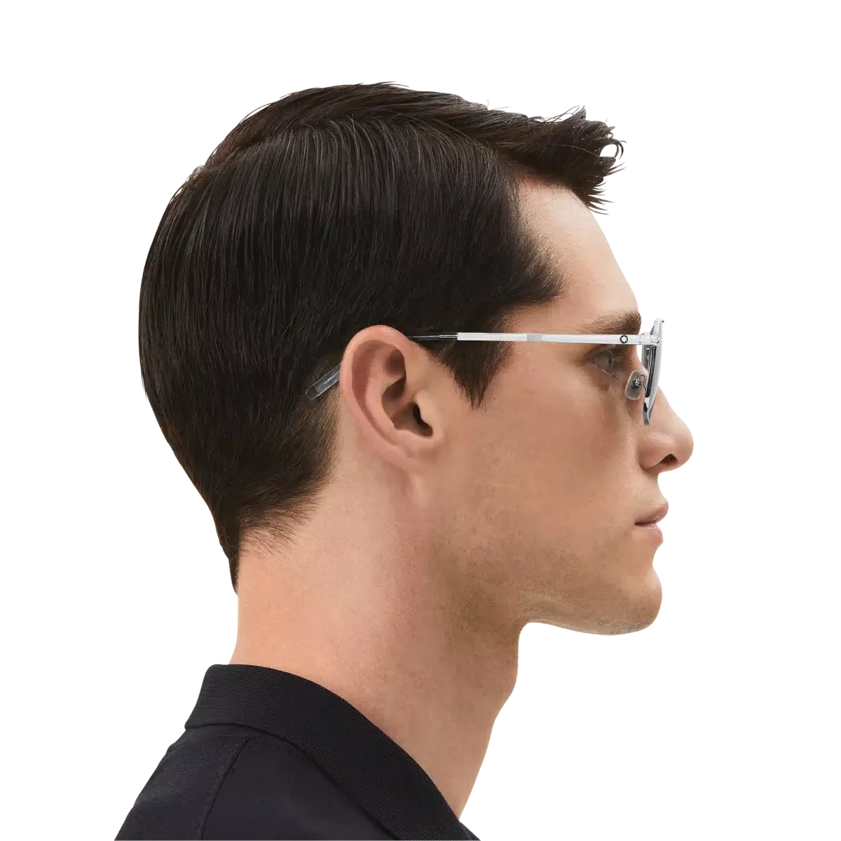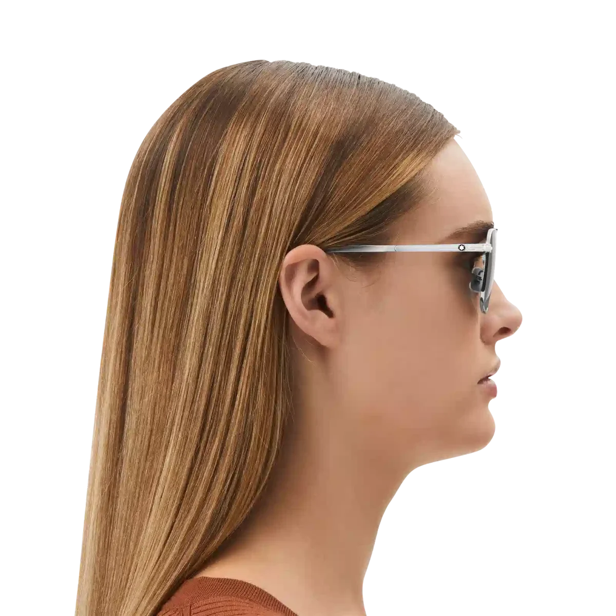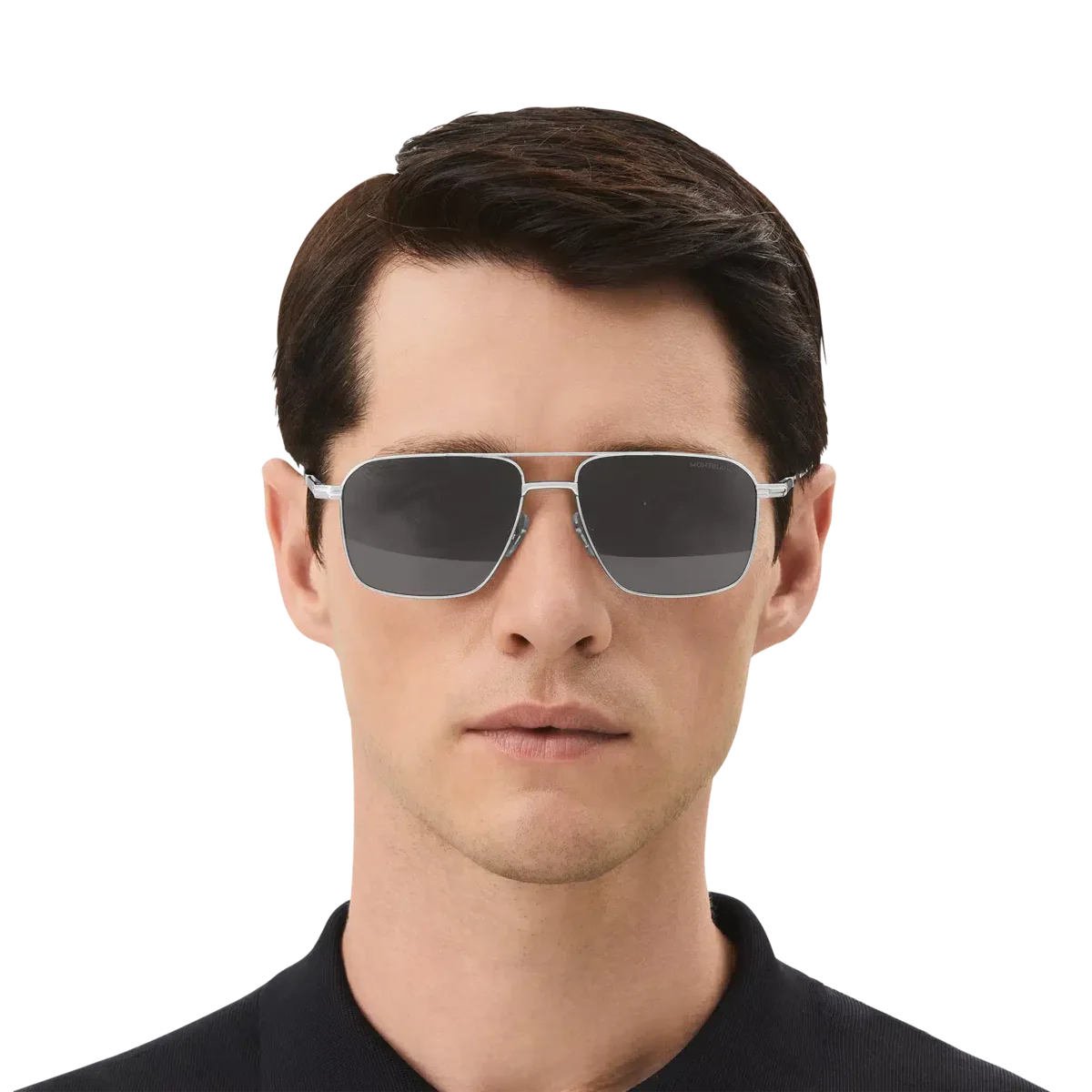 Dessa rektangulära solglasögon har en silverfärgad metallram och gråa linser. De har en dubbel metallbrygga på framsidan. Den silverfärgade klämdetaljen är det centrala elementet i skalmsdesignen. Den hyllar ett viktigt element i Meisterstück-skrivinstrumentet, som också gör det möjligt att hänga bågen på fickan. Det snötäckta Montblanc-emblemet är infattat i klämdetaljen på skalmen och Montblanc-logotypen är lasergraverad på vänster lins. Identifieringsnummer: MB131313