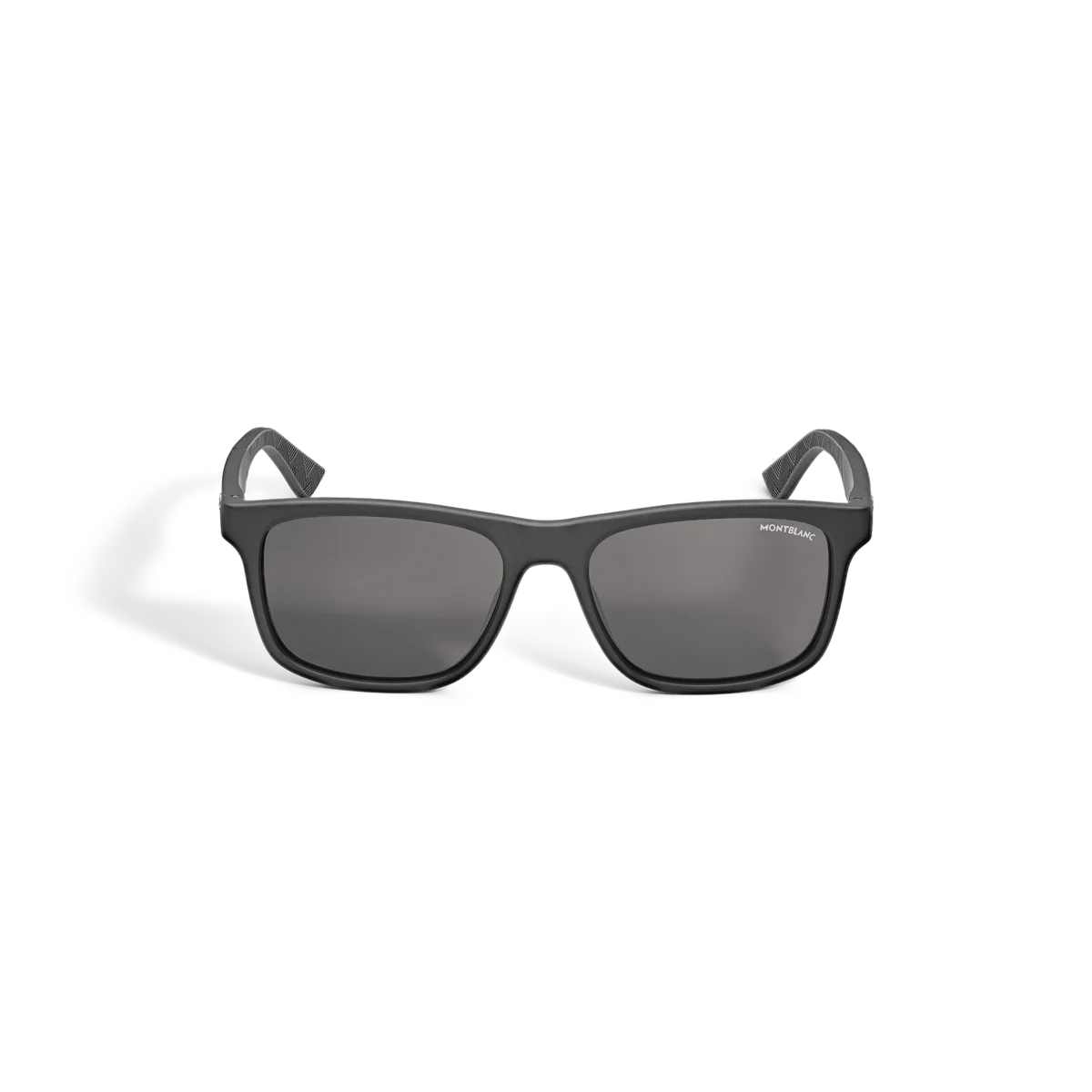 Dessa solglasögon i rektangulär stil har en svartfärgad injicerad båge och grå polariserade linser. Montblanc-emblemet är inneslutet i bågens design och bågens ändar har gummiband med Montblanc Extreme 3.0-mönster för att ge en sportig look. Montblanc-logotypen är lasergraverad på solglasögonens vänstra lins.