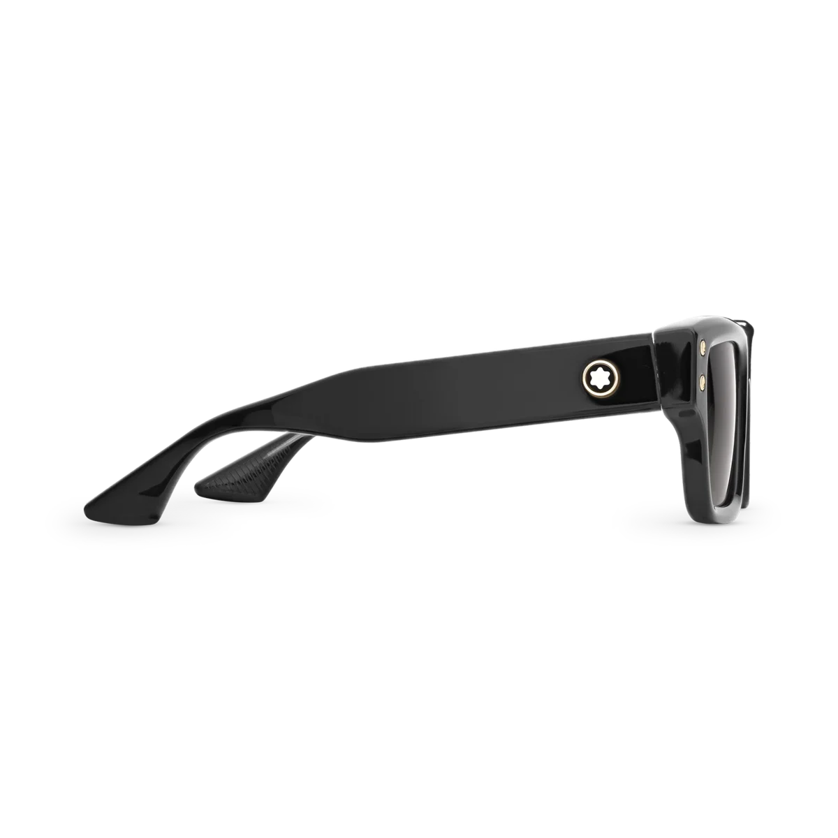 Dessa solglasögon i rektangulär stil har en svartfärgad acetatbåge och svarta linser. En djärv acetatform med snökapseldetaljer på nitarna på framsidan och Montblanc Extreme-mönstret inkorporerat i insidan av skalmarna. Montblanc-emblemet är inneslutet i den djärva skalmsdesignen. Montblanc-logotypen är lasergraverad på vänster lins och det halkfria mönstret är lasergraverat på insidan av skalmarna för ökad komfort.