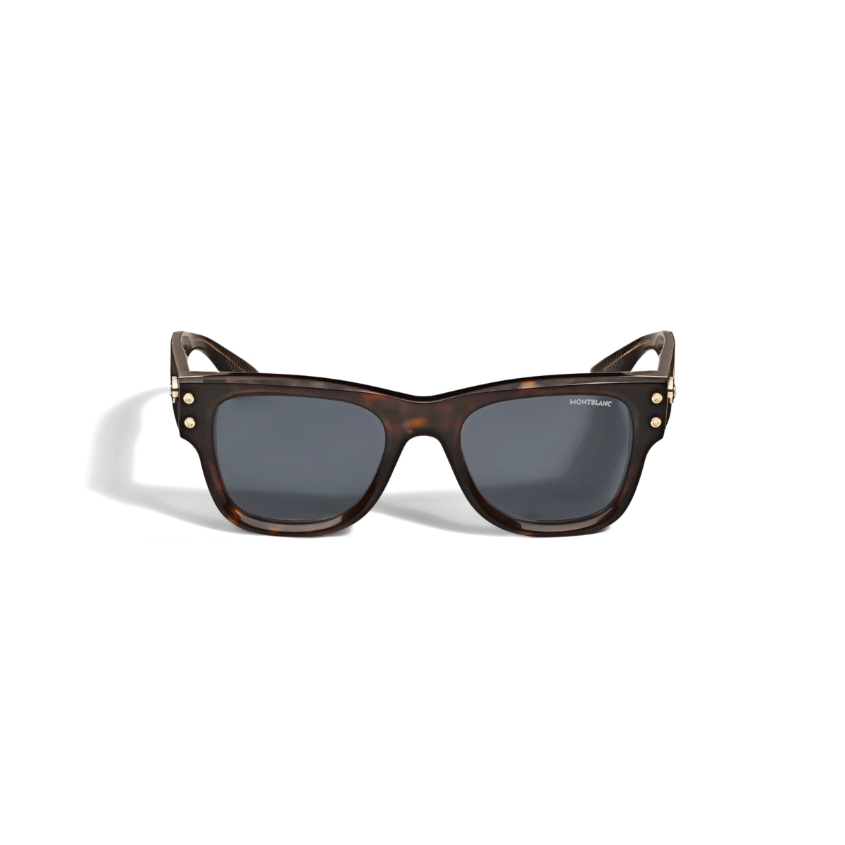 Dessa solglasögon i rektangulär stil och djärv form har en havannafärgad acetatbåge och gråa linser. Nitarna på framsidan har en snöskoddetalj och Montblanc Extreme 3.0-mönstret är inkorporerat i insidan av skalmarna. Montblanc-emblemet är inneslutet i skalmarna. Montblanc-logotypen är lasergraverad på vänster lins och ett halkskyddsmönster är lasergraverat på insidan av skalmarna för ökad komfort.