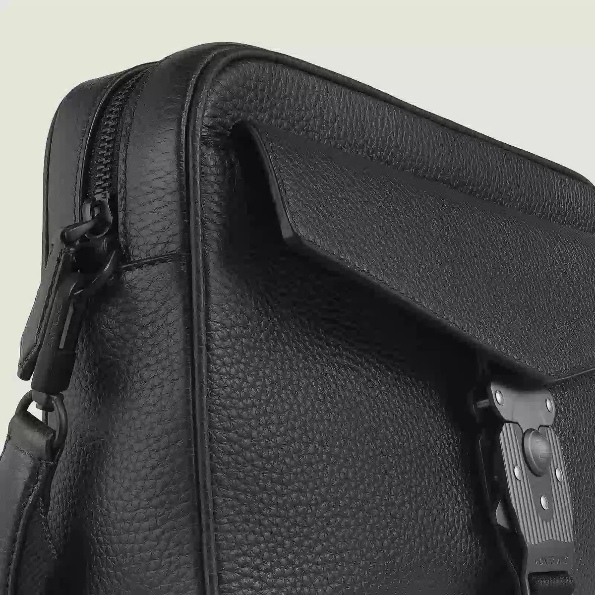 Upptäck den eleganta messenger-väskan, tillverkad av strukturerat men mjukt svart läder med kornstruktur och med den säkra M LOCK 4810-stängningen på framsidan. Designen inkluderar ett rymligt huvudfack, en lättillgänglig framficka under fliken och en öppen innerficka för att hålla ordning på dina saker. För en personlig touch kan låset på framsidan anpassas så att väskan blir helt unik för dig. Den justerbara och avtagbara axelremmen garanterar bekväm och mångsidig bärkomfort med enkel stil.