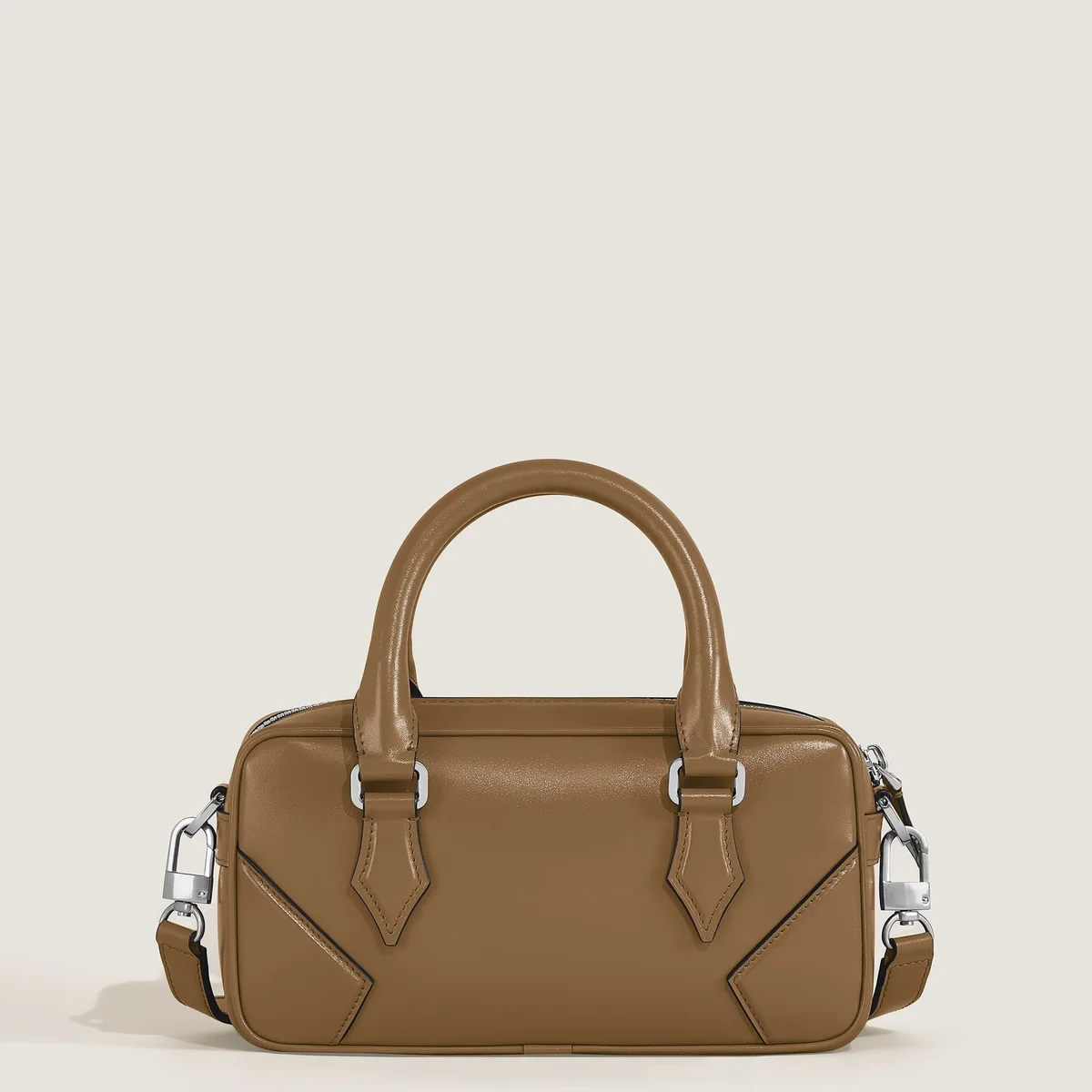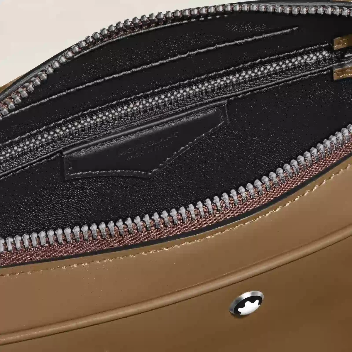 Upptäck den nya eleganta lilla bowlingväskan, tillverkad av elegant sandfärgat Meisterstück-läder. Denna mångsidiga väska har ett rymligt huvudfack och en praktisk ficka med dragkedja för mindre nödvändigheter. Den har två handtag på ovansidan och en justerbar, avtagbar axelrem och kombinerar smidigt funktionalitet med raffinerad elegans.