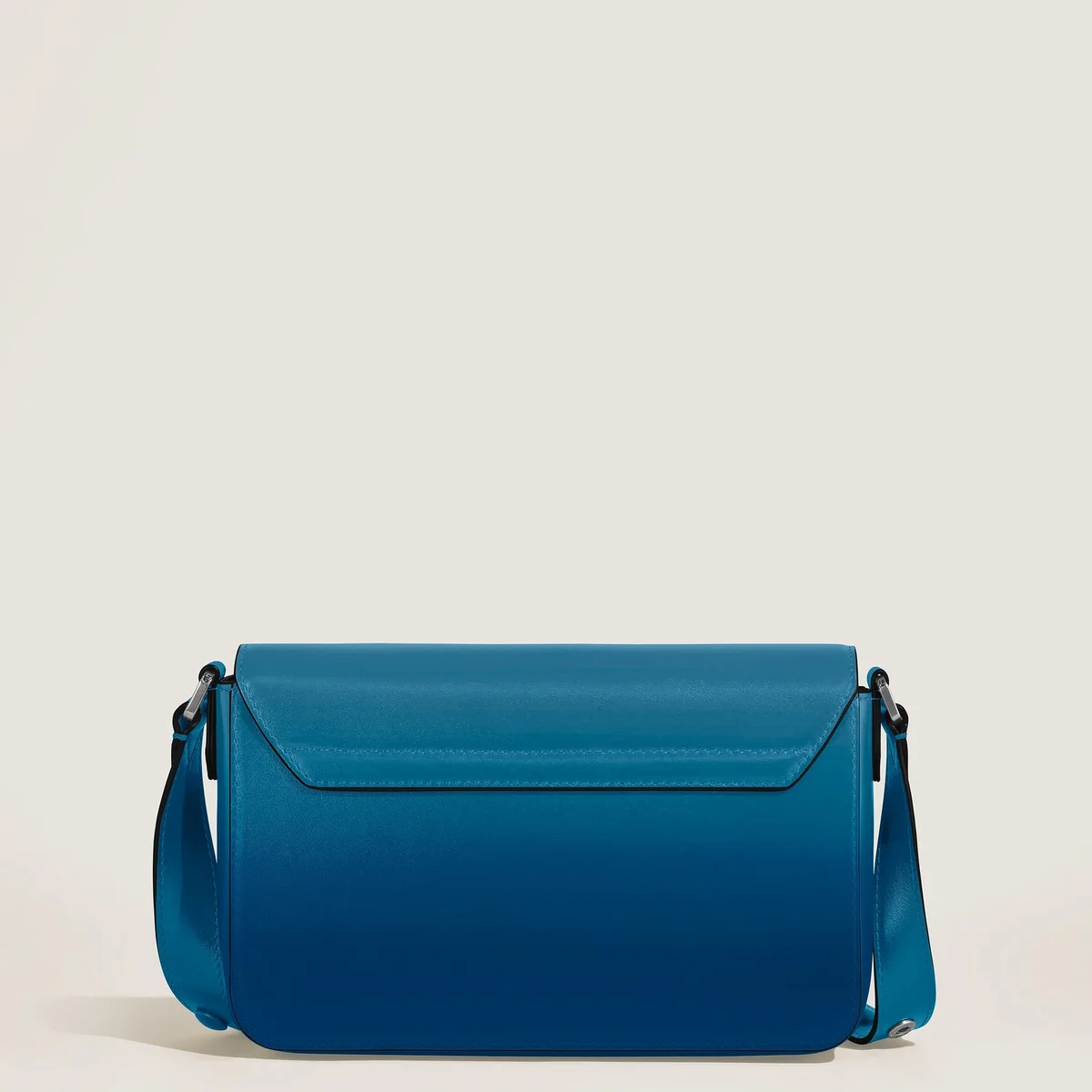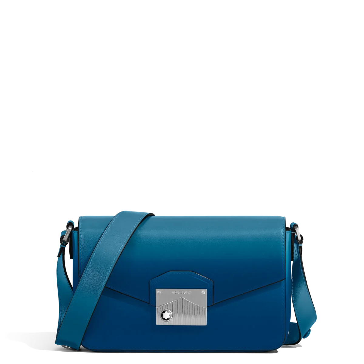 Möt den nya Meisterstück mini messenger. Den är tillverkad i rökblått läder med sfumato-effekt och har en elegant bergslåsning inspirerad av Mont Blancs silhuett och prydd med ett förstorat Montblanc-logo. Huvudfacket är lättillgängligt under fliken, medan en öppen ficka på insidan gör det möjligt att organisera förvaringen. Denna messenger har en justerbar axelrem i läder och erbjuder både stil och funktionalitet för dina dagliga äventyr.