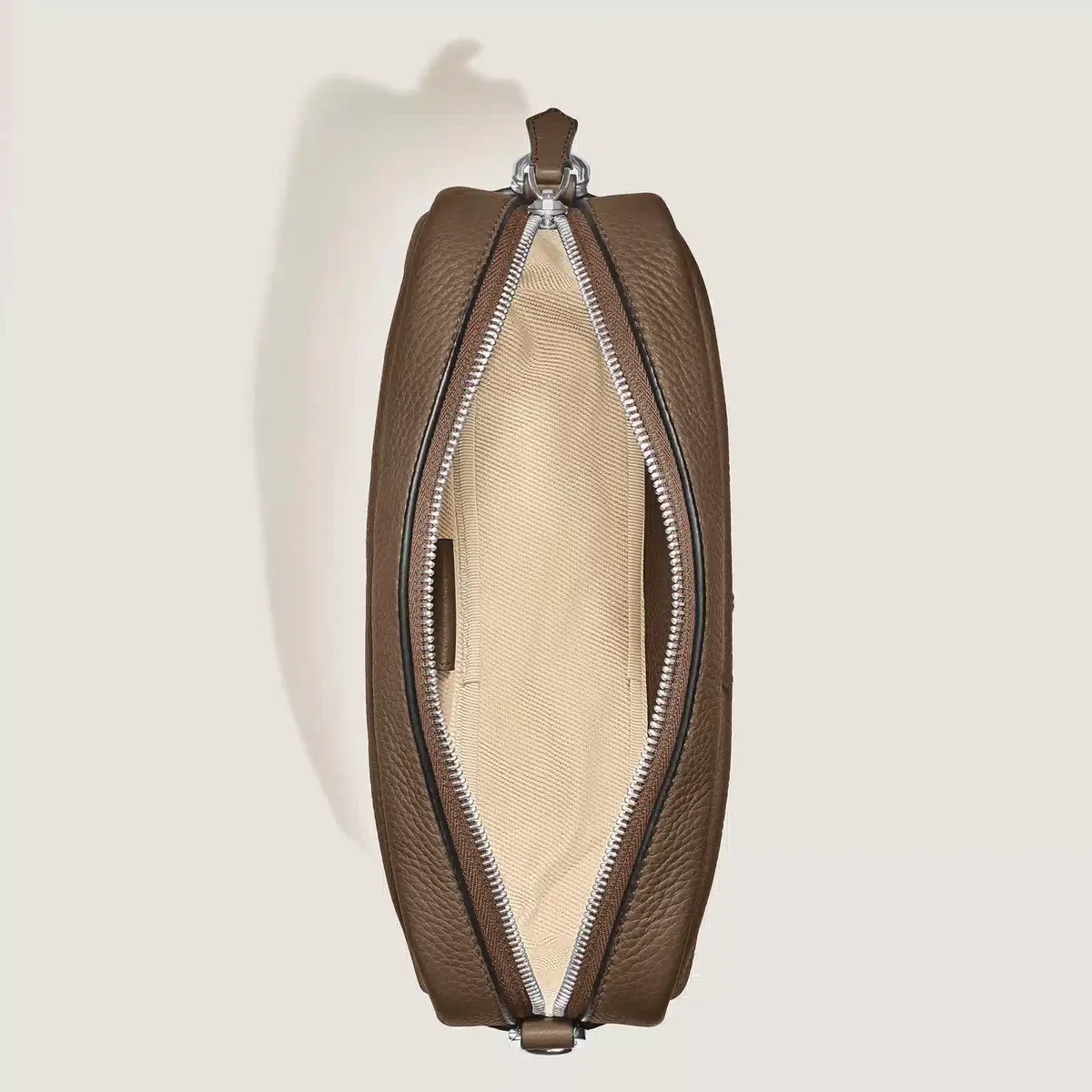Denna lilla crossbody-väska är tillverkad av mjukt kalvskinn i noisette-korn och har en rektangulär silhuett som förstärks av Meisterstück-läderdetaljer, inklusive en djärv dragkedja i form av en pennspets och raffinerade sadelsömmar som påminner om pennans spår. Den är designad för att vara praktisk och har ett huvudfack med en öppen ficka och två pennfickor, medan en avtagbar, justerbar axelrem ger mångsidiga bäralternativ med enkel stil.