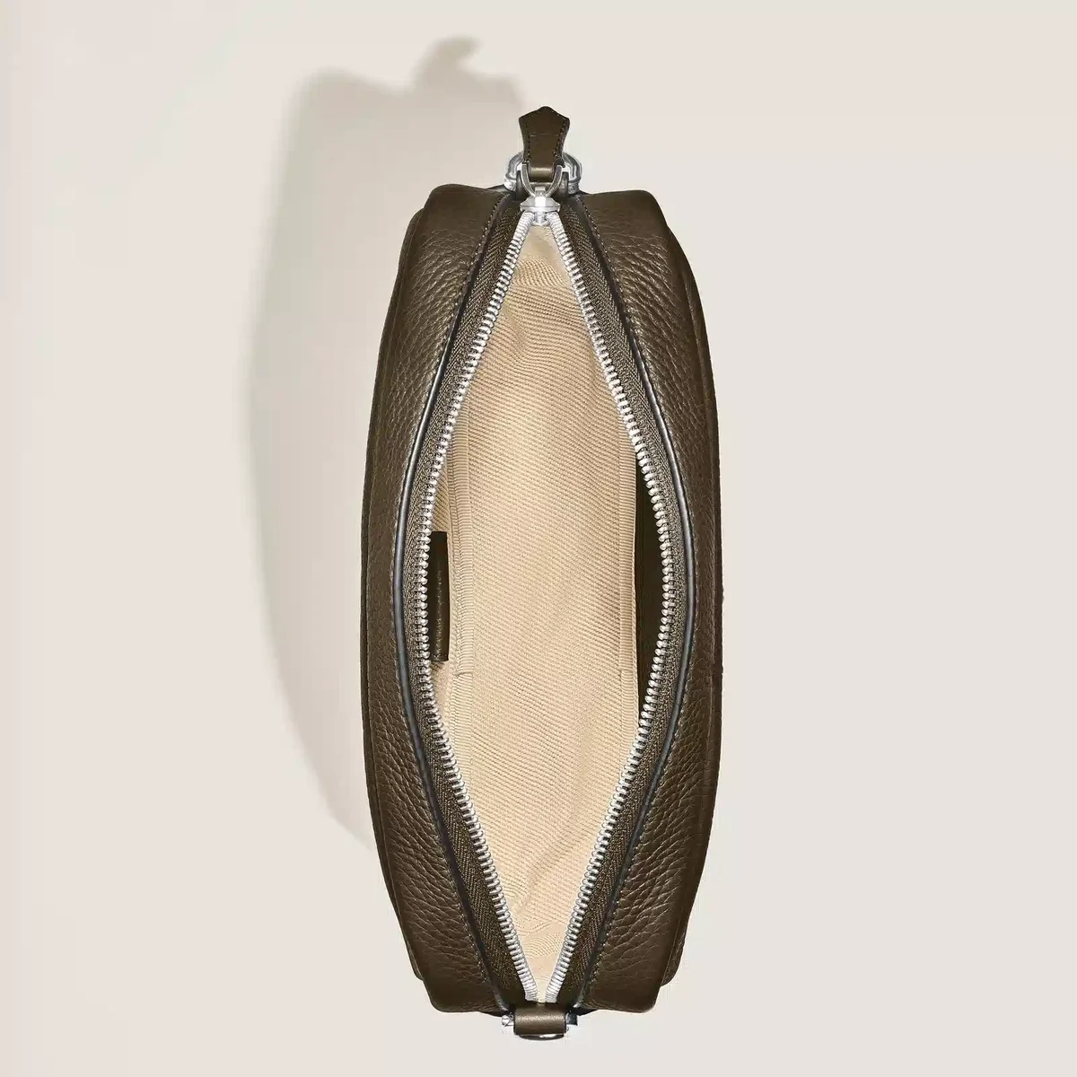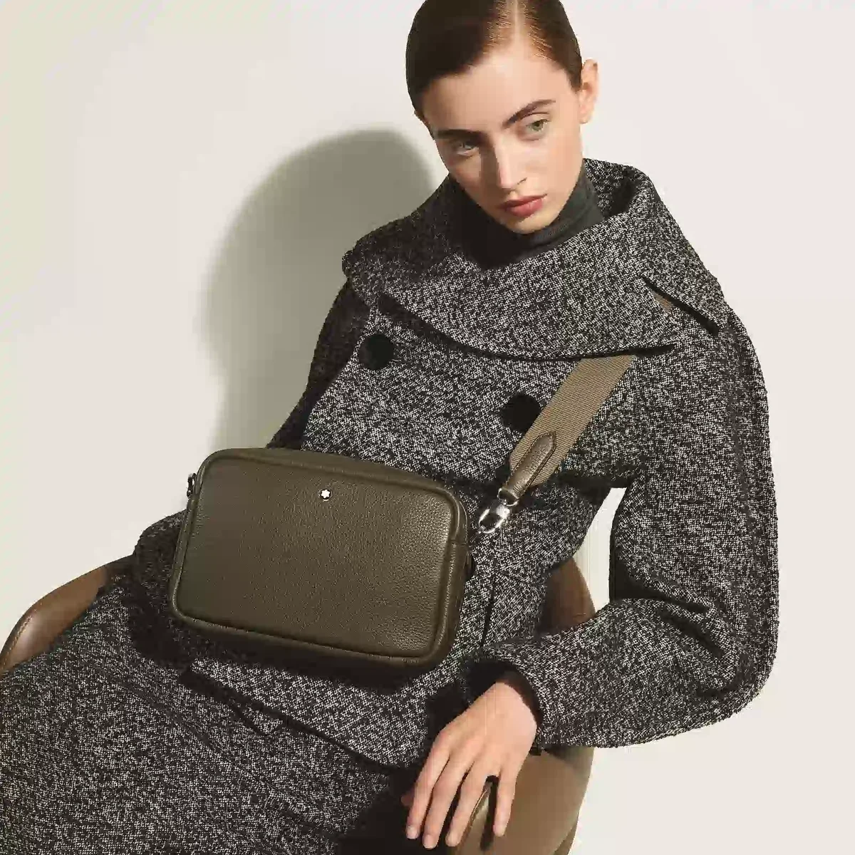 Denna lilla crossbody-väska är tillverkad av mjukt khakifärgat kalvskinn och har en rektangulär silhuett som förstärks av Meisterstück-läderdetaljer, inklusive en markant dragkedja i form av en pennspets och raffinerade sadelsömmar som påminner om pennstreck. Den är designad för att vara praktisk och har ett huvudfack med en öppen ficka och två pennfickor, medan en avtagbar, justerbar axelrem ger mångsidiga bäralternativ med enkel stil.