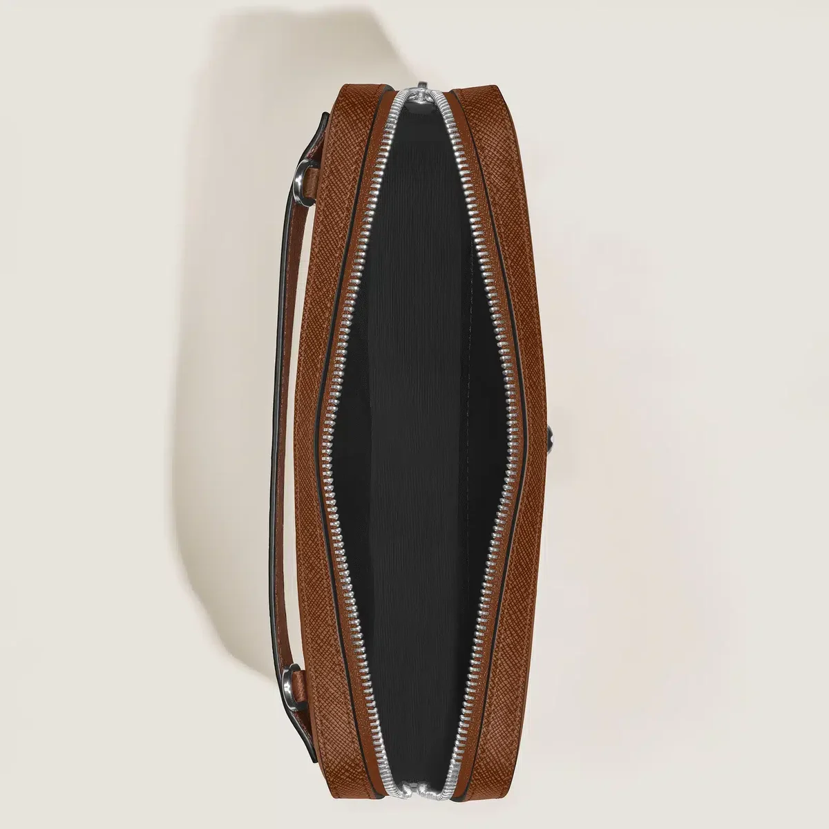 Denna mini crossbody-väska är inspirerad av skrivandets värld och tillverkad av präglat Sartorial-läder i en elegant fauve-färg. Den är designad för mångsidighet och kan bäras i handen eller över axeln med hjälp av den justerbara, avtagbara remmen. För extra funktionalitet har den ett läderband på baksidan som gör att den kan fästas på större väskor.