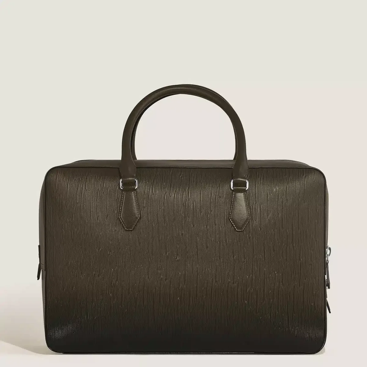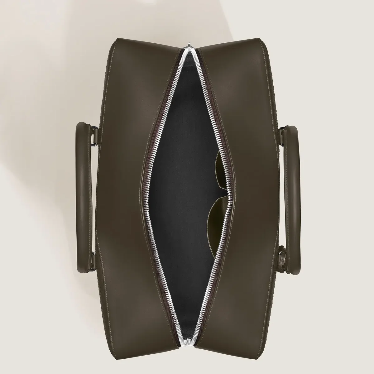 Denna Montblanc 149 läderväska ingår i Ink-serien och är tillverkad i khakifärgat Corteccia-läder. Lädret är inspirerat av trädbarkens struktur och genomgår en noggrann prägling för att skapa barkmotivet, följt av en handapplicerad sfumato-effekt som ger en rik gradient som förstärker dess naturliga elegans. Väskan är designad för korta resor och weekendresor och har ett rymligt innerutrymme och ett säkert lås för trygghet. Signaturdetaljerna i hörnen, inspirerade av silhuetten av en bläckflaska, är en hyllning till Montblancs skrivarv och gör denna väska till en raffinerad och funktionell resekompanjon. Identifikationsnummer: MB220268 Mått: 455 mm * 195 mm * 295 mm