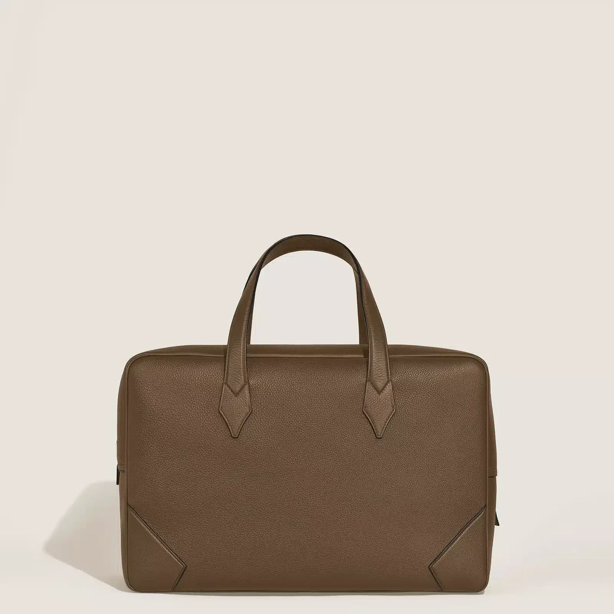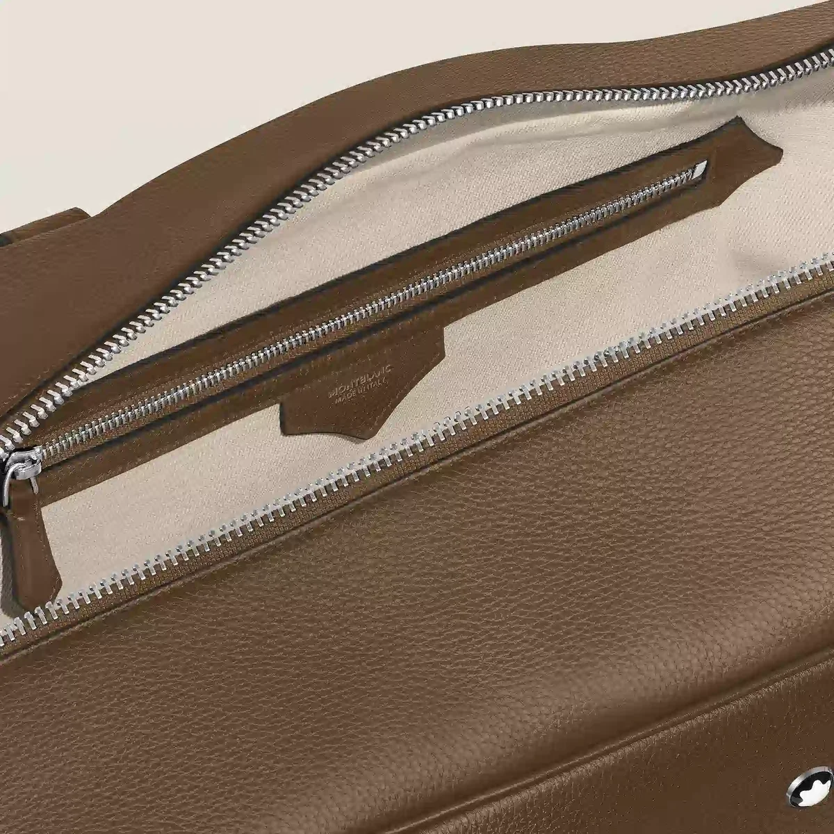 Montblanc 149-väskan är en elegant följeslagare för korta resor eller weekendutflykter och kombinerar funktionalitet med raffinerad design. Den rika strukturen i nötbrunt narvläder ger en lyxig känsla, medan det yttre låset och nyckelförslutningen garanterar extra säkerhet för dina tillhörigheter. Väskan har hörndetaljer inspirerade av formen på en bläckflaska, som hyllar skrivandets kultur. Det rymliga innerutrymmet har en ficka med dragkedja, två öppna fickor och en speciell ögla för ditt skrivinstrument, vilket gör den lika praktisk som sofistikerad.