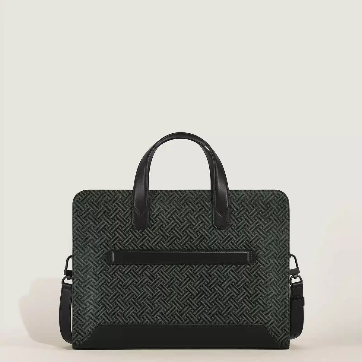 Denna tunna dokumentväska är designad för den moderna urbana yrkesmannen och kombinerar funktion med raffinerad stil. Den är tillverkad i läder och tryckt med vårt distinkta Extreme 3.0-motiv i multikaki, en elegant kombination av svart, noisette och malakit, och har en omisskännlig design som accentueras av eleganta svarta metallbeslag. Den är idealisk för vardagsbruk och professionella möten och erbjuder gott om utrymme för A4-dokument, skrivinstrument och andra nödvändigheter, med en ficka med dragkedja och två pennöglor som säkerställer smidig organisation.