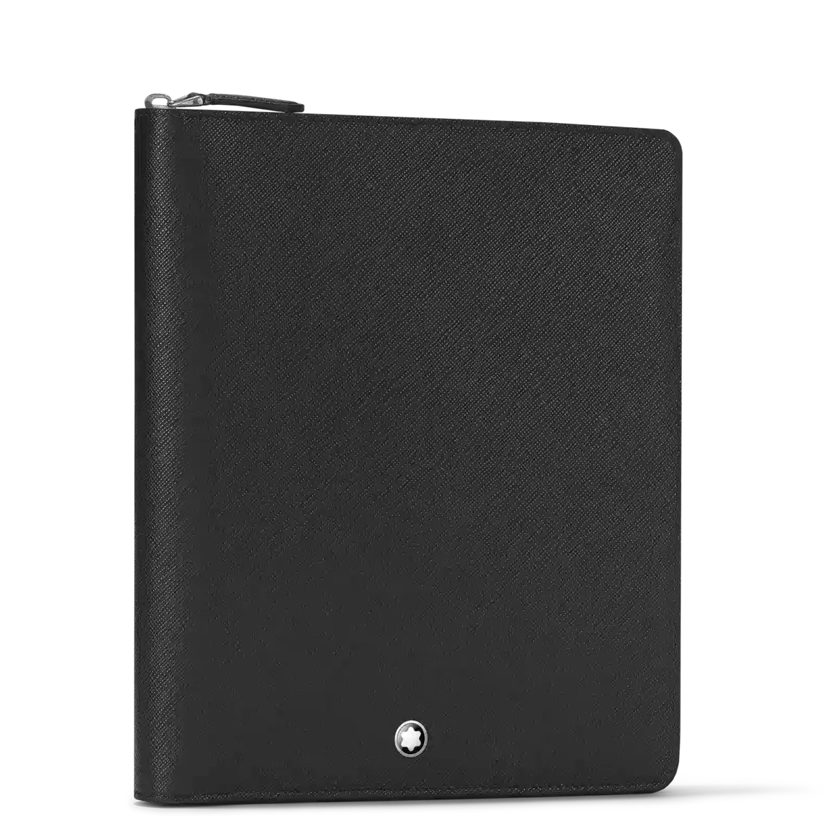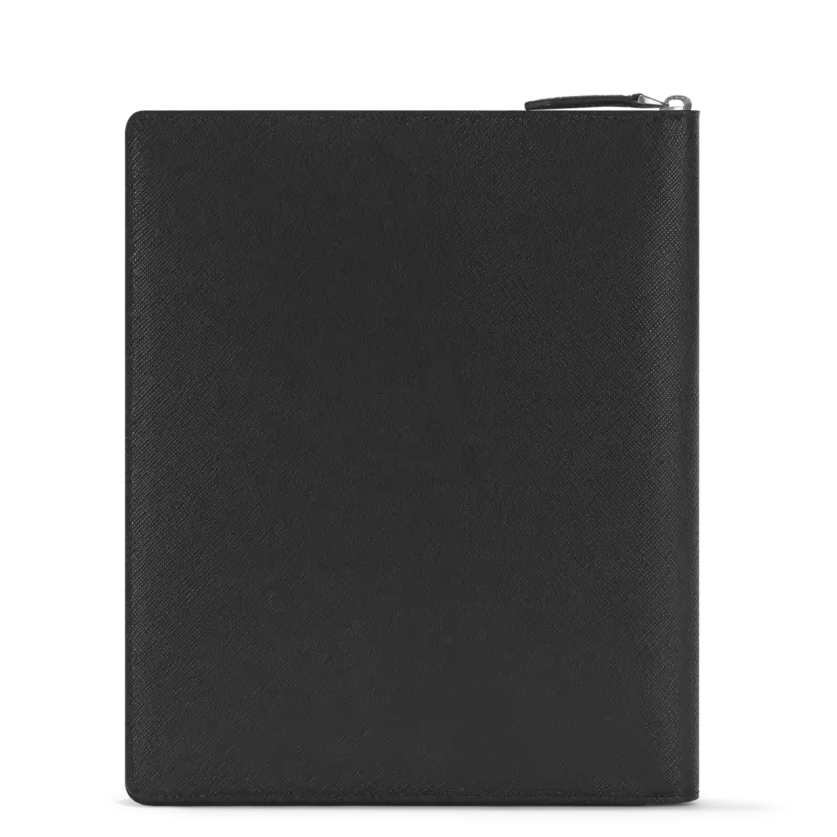Denna anteckningsbokshållare är en elegant följeslagare för möten, affärsresor och mycket mer, och är utformad för att enkelt rymma en A5-anteckningsbok (MB9596). Den är tillverkad i raffinerat Saffiano-mönstrat läder och har en dragkedja som säkerställer att viktiga papper förvaras säkert. På framsidan finns Montblanc-emblemet i en ny större storlek. Identifieringsnummer: MB136840