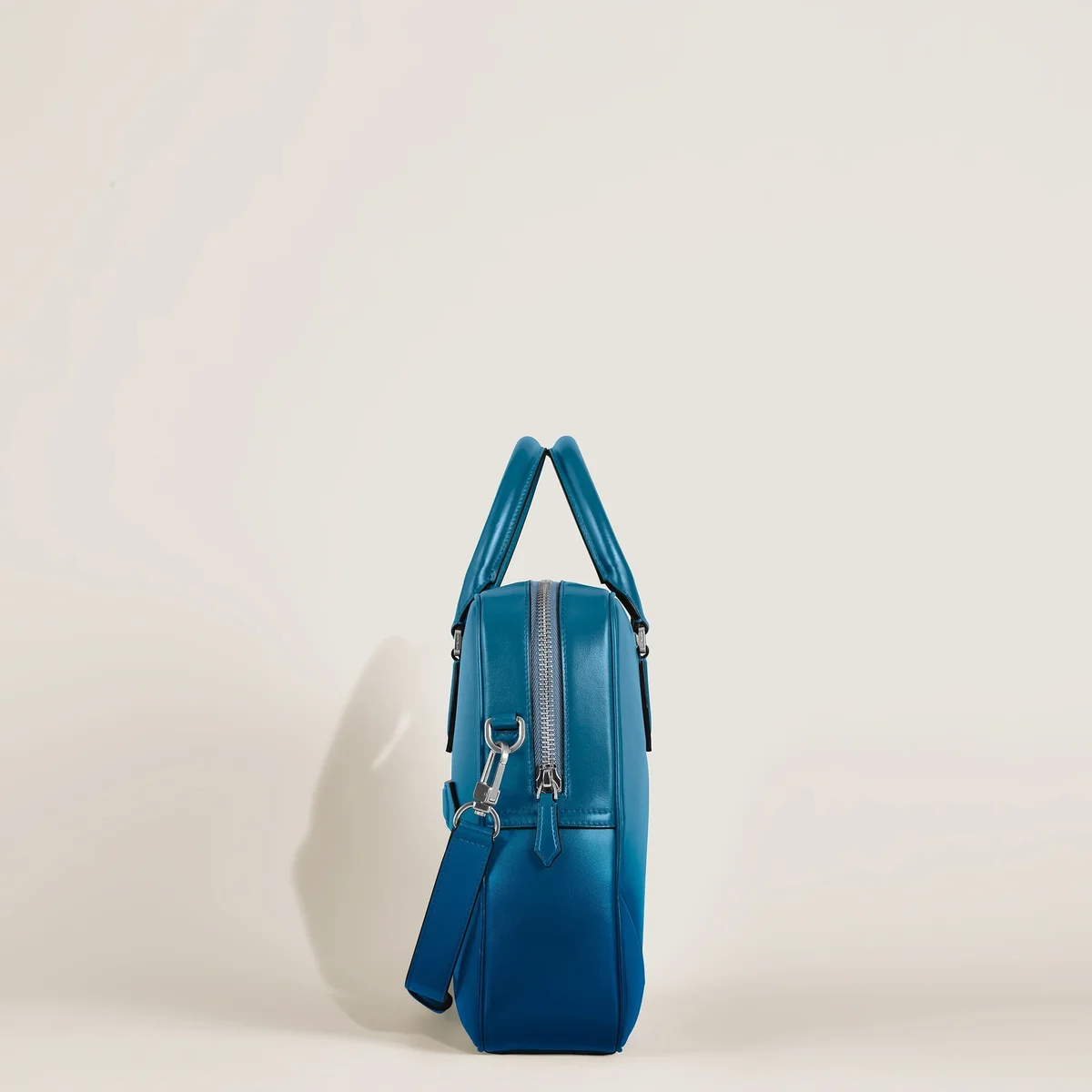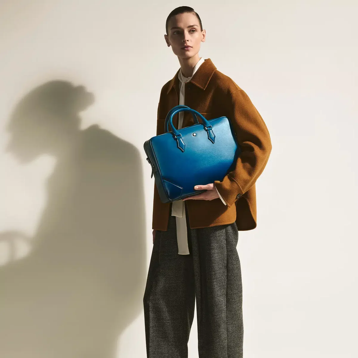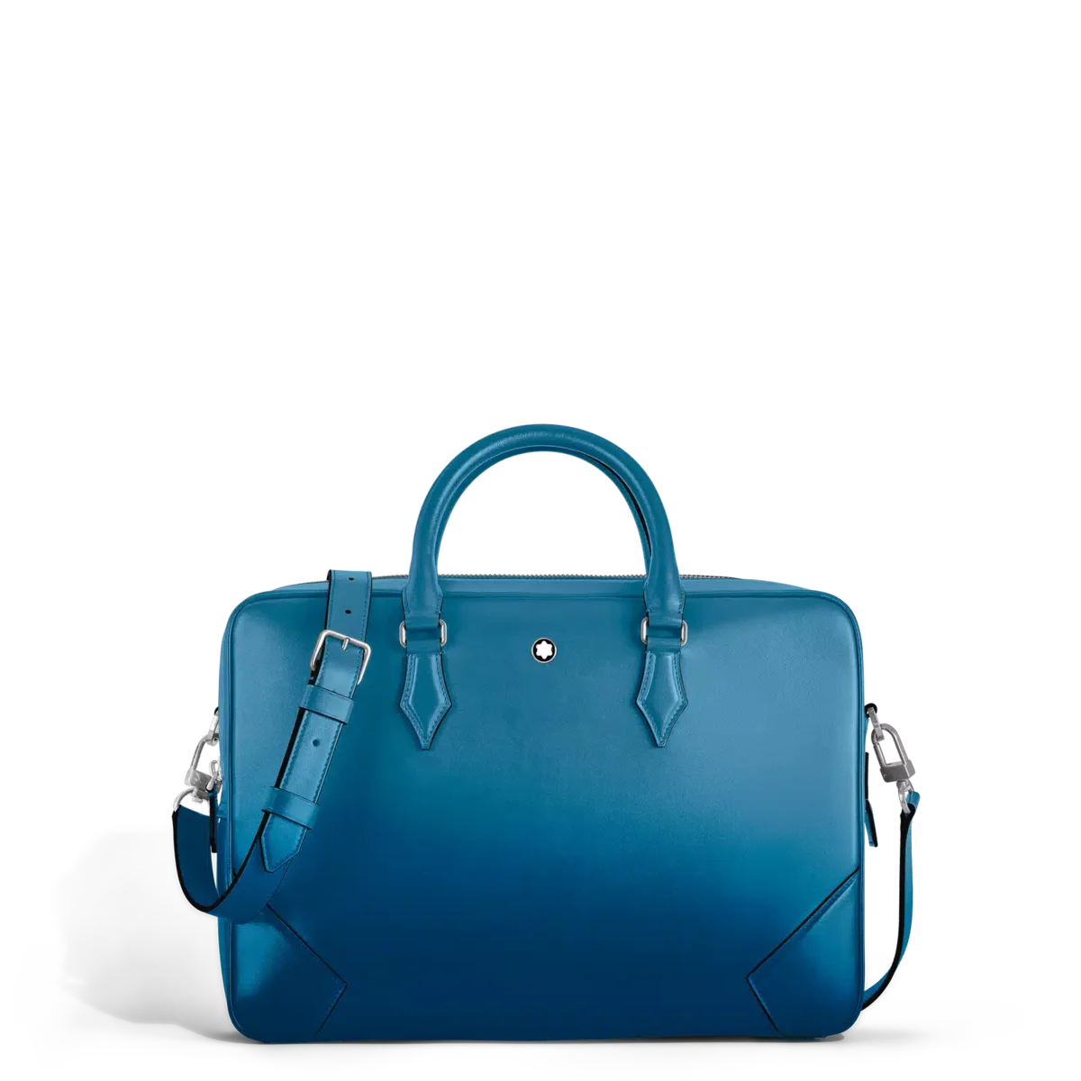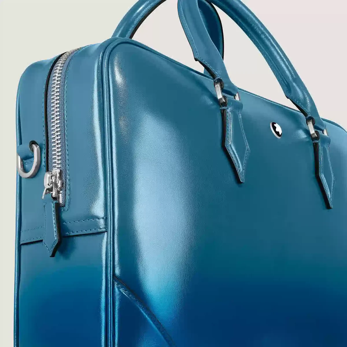 Denna Meisterstück-dokumentväska är en elegant följeslagare på affärsresor och ett utmärkt exempel på Montblancs hängivenhet till hantverket. Den rökblå läderväska har en lyxig känsla som förstärks av den manuellt applicerade sfumato-effekten, medan sömmarna, dragkedjorna och handtagen påminner om formen på pennspetsen, Montblancs essens. Väskan har innerfickor för ökad praktiskhet. Läderhandtagen på ovansidan, den avtagbara läderaxelremmen och satellitsystemet erbjuder flera bäralternativ.