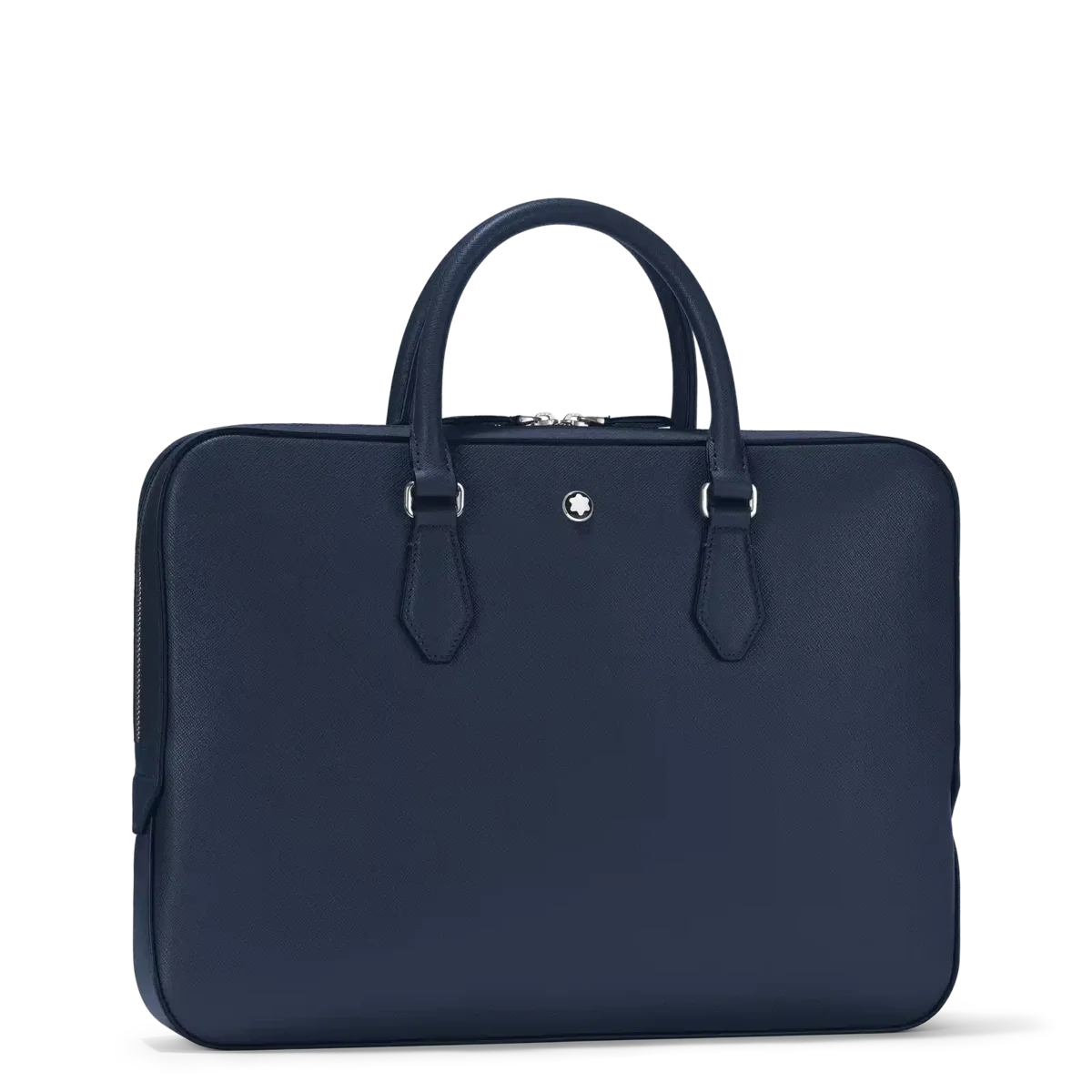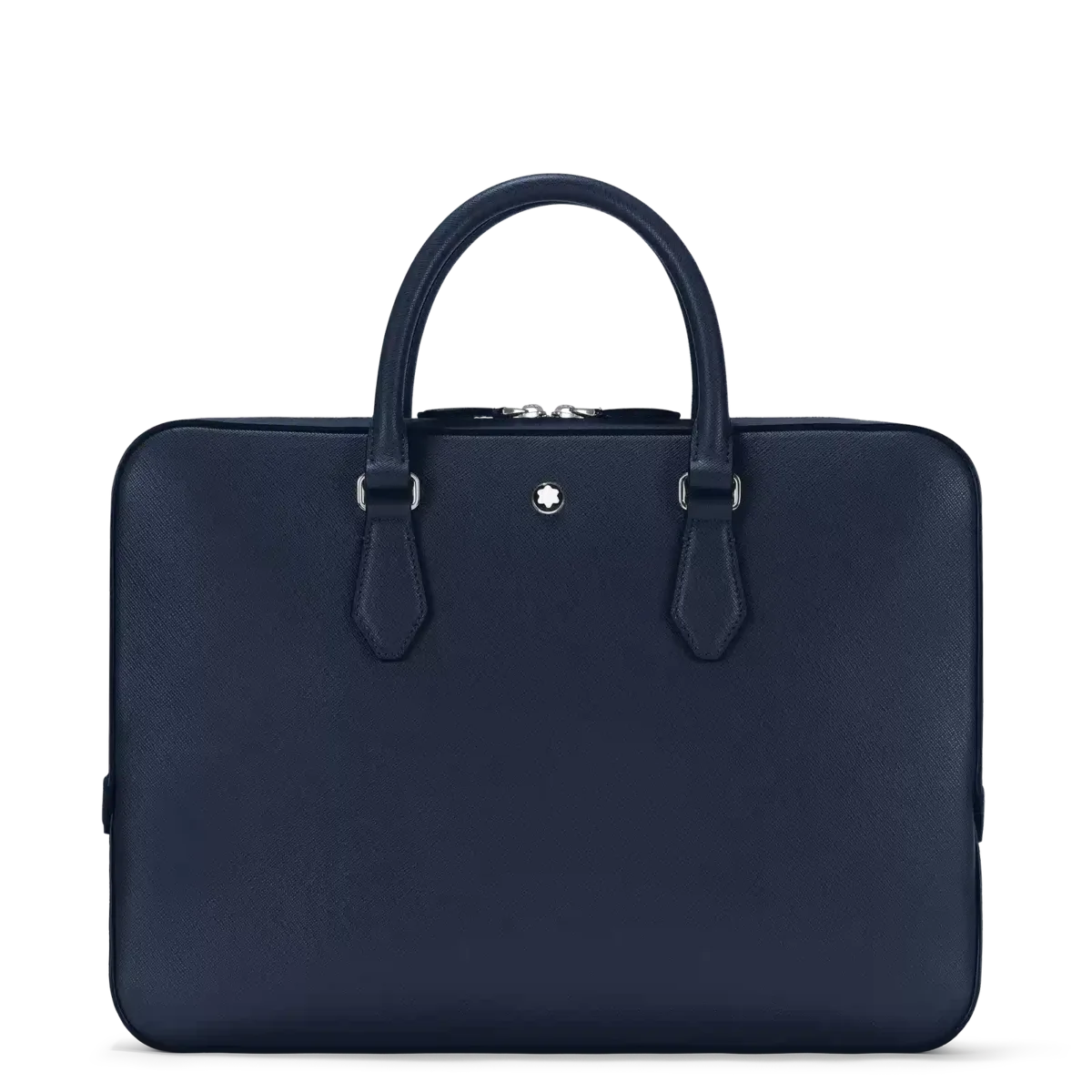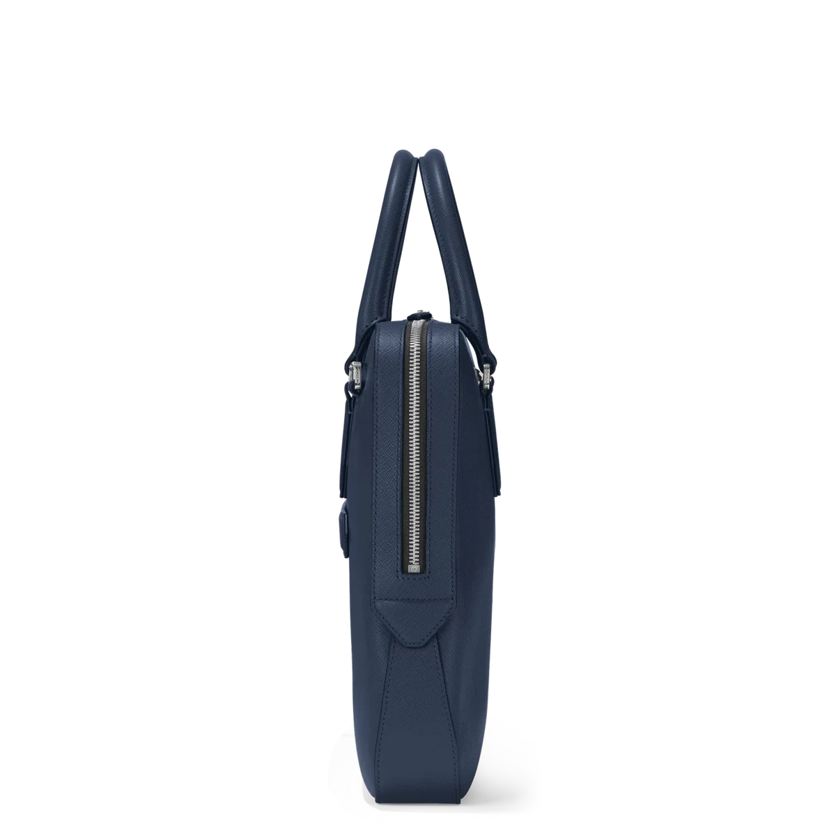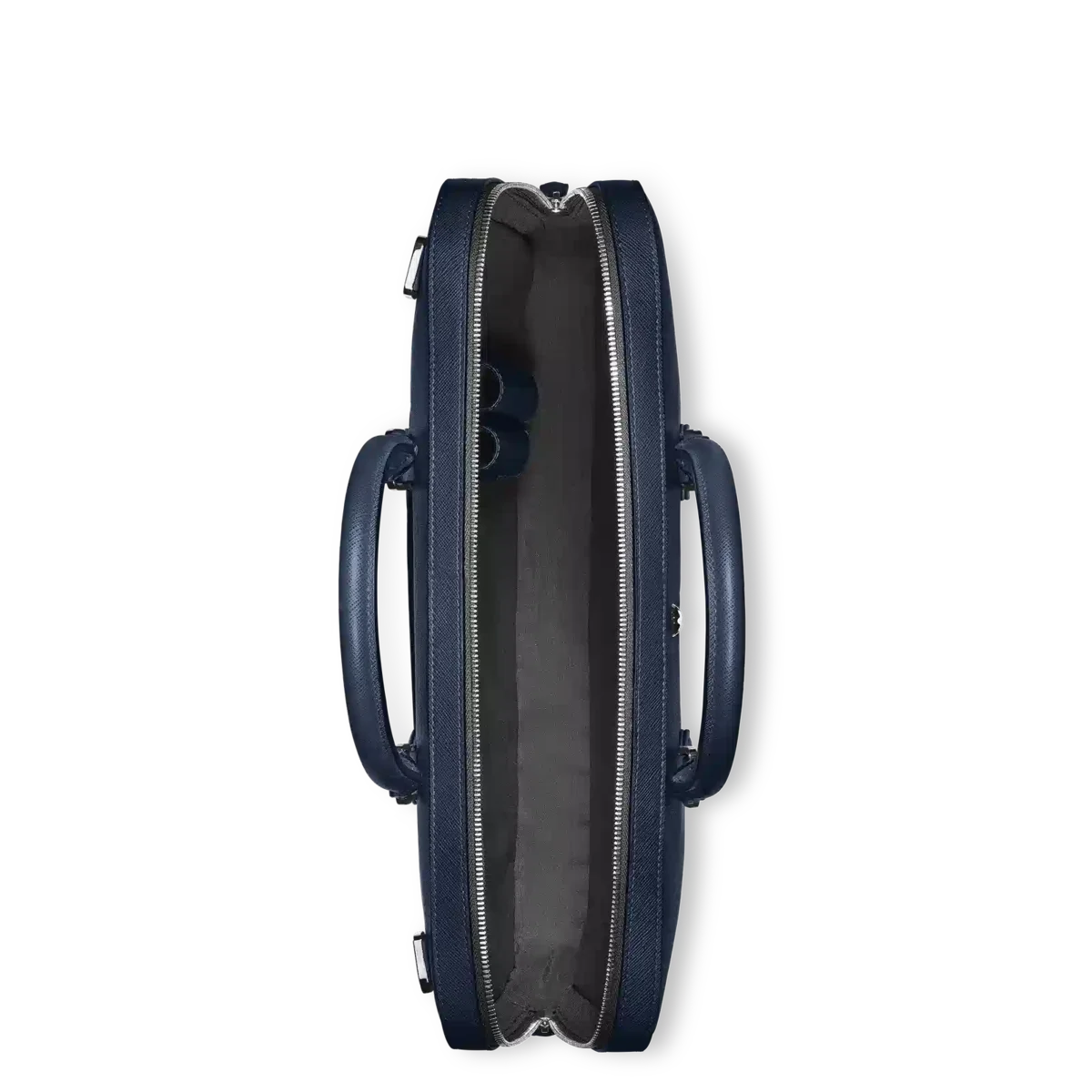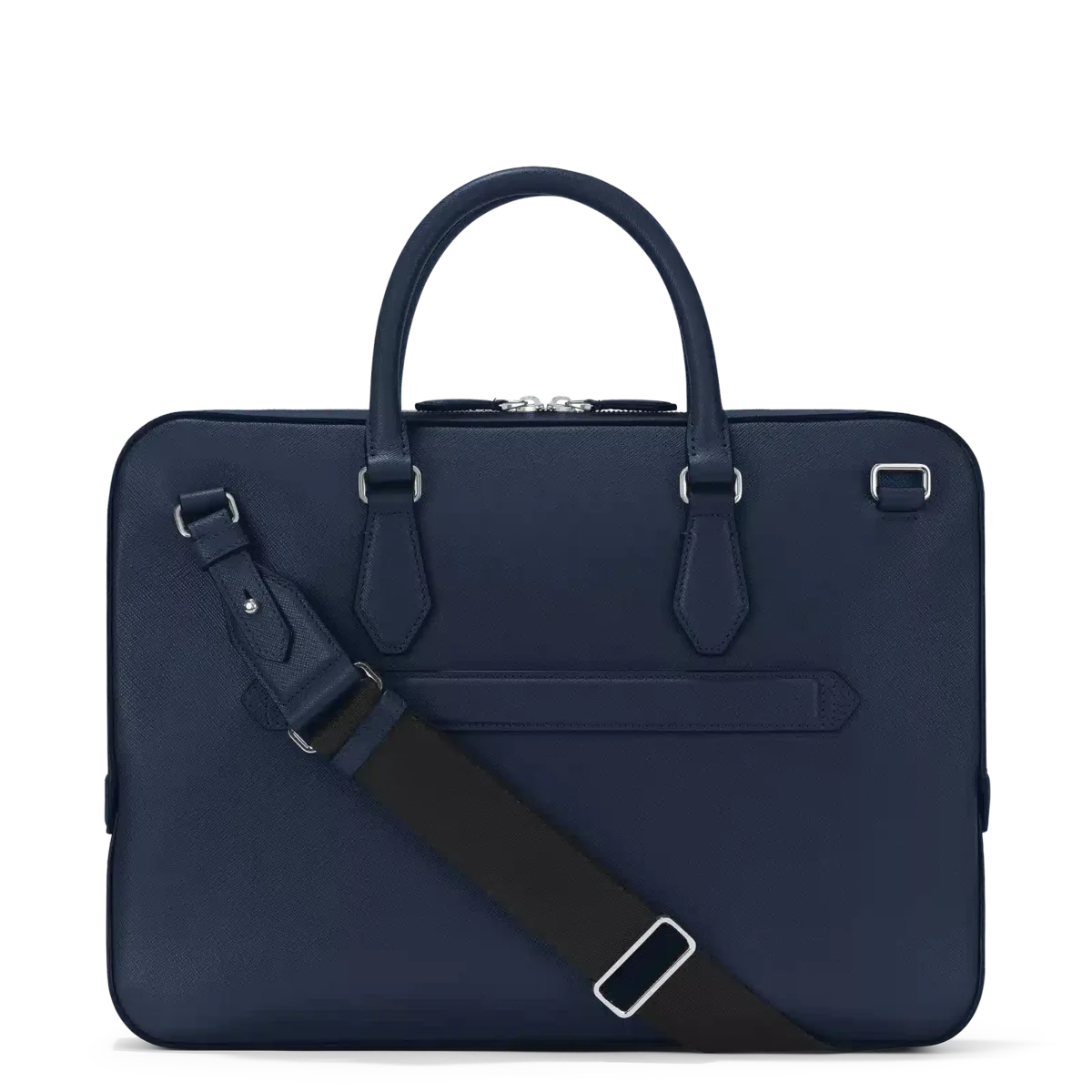 Denna smala och eleganta dokumentväska ger en sofistikerad touch till affärsklädseln. Den är designad i lyxigt bläckblått läder med modulär funktionalitet, och du kan anpassa väskan efter din egen stil genom att fästa mindre tillbehör. Viktiga detaljer inkluderar handtag som är formade för att hedra handskriftens skönhet, samt Montblanc-emblemet i en ny större storlek. Identifieringsnummer MB131715 Mått 400 mm * 50 mm * 290 mm