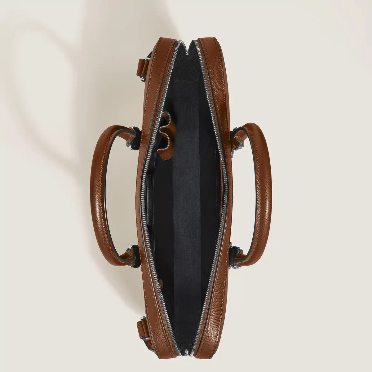 Denna tunna dokumentväska kombinerar Montblancs skrivarv med elegant, modern funktionalitet. Den är tillverkad av präglat Sartorial-läder i färgen fauve och skräddarsydd för affärsbehov. Det rymliga huvudfacket erbjuder gott om plats för A4-filer, elektroniska enheter och skrivinstrument. Den avtagbara, justerbara remmen ger mångsidiga bäralternativ, vilket gör den till ett raffinerat och praktiskt val för yrkesverksamma.
