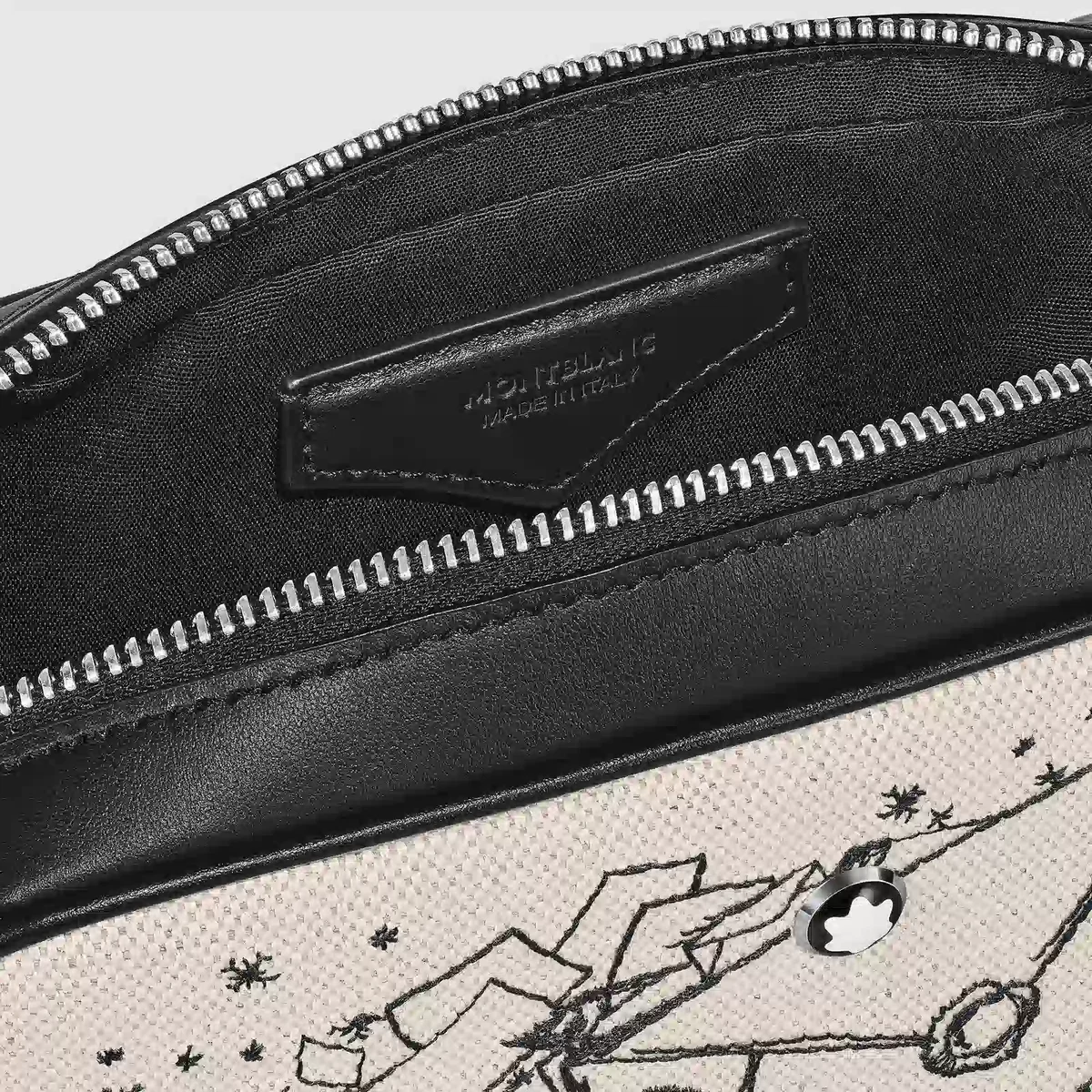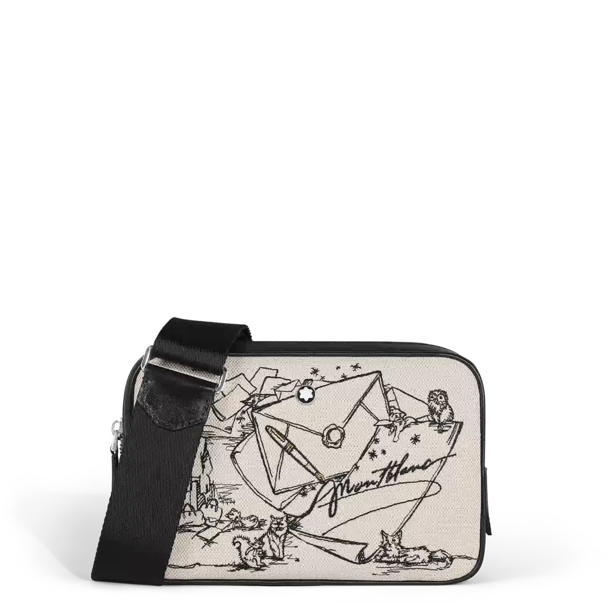 Årets Happy Holidays mini crossbody är en charmig följeslagare för festliga äventyr. Denna kompakta väska med ett broderat mönster som föreställer virvlande papper, den omisskännliga Meisterstück och många andra element som talar Montblancs språk är ett bevis på hantverksskicklighet och skrivandets kraft. I huvudfacket finns en praktisk öppen ficka, och en justerbar, avtagbar axelrem i läder erbjuder mångsidiga bäralternativ.