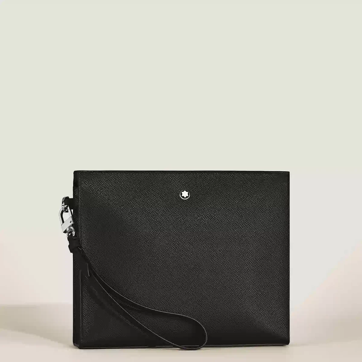 Bär med dig dina dagliga nödvändigheter i denna sofistikerade Sartorial-påse. Tillverkad av Saffiano-mönstrat läder i elegant svart, med ett extra öppet fack i huvudfacket för extra bekvämlighet. Bär den i handen, under armen eller runt handleden med det avtagbara handtaget.