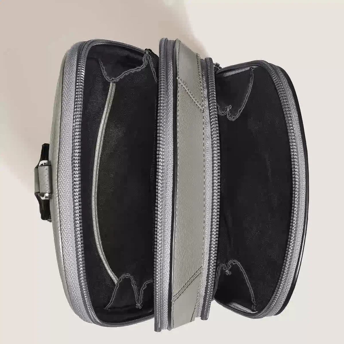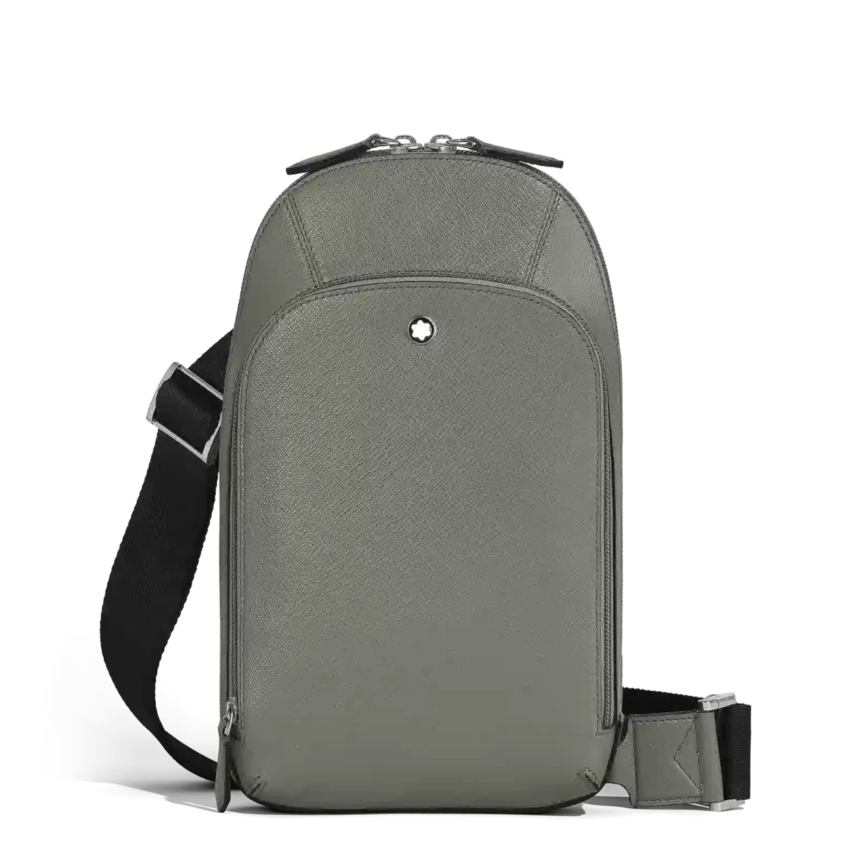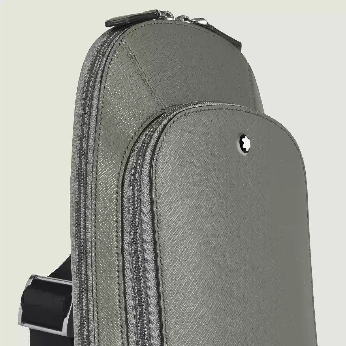 Den nya Sartorial-axelremsväskan, tillverkad av elegant mellangrått Saffiano-präglat läder, ger din vardagslook en modern och avslappnad touch. Detta funktionella tillbehör har en säker dragkedja och en justerbar axelrem för komfort. Den har ett rymligt huvudfack, en innerficka med dragkedja för värdesaker och ytterfickor med dragkedja, tre öppna fickor och plats för tre kreditkort.