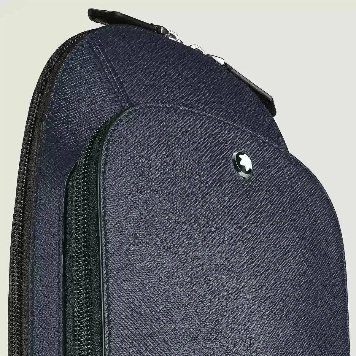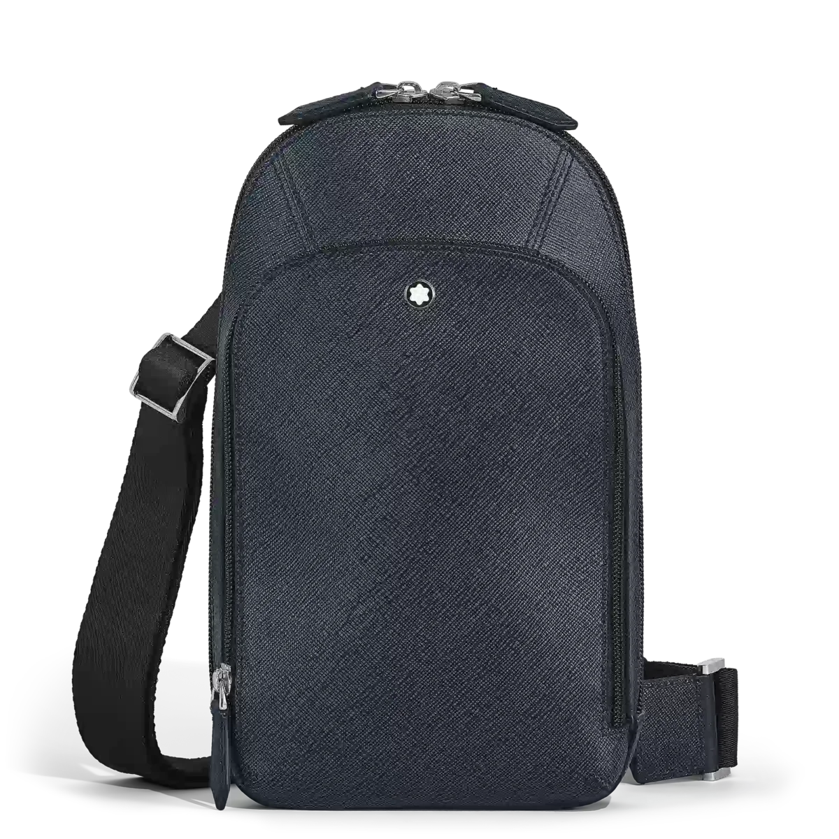 Slingväskan, tillverkad av präglat läder i en elegant tvåfärgad kombination av klassiskt blått och svart, ger din vardagsstil en avslappnad men raffinerad touch. Den är designad för funktionalitet och har en säker dragkedja och en justerbar axelrem för komfort. Det rymliga huvudfacket har en innerficka med dragkedja för värdesaker, medan utsidan har en ficka med dragkedja, tre öppna fickor och plats för tre kreditkort, vilket garanterar smidig organisation när du är på språng.