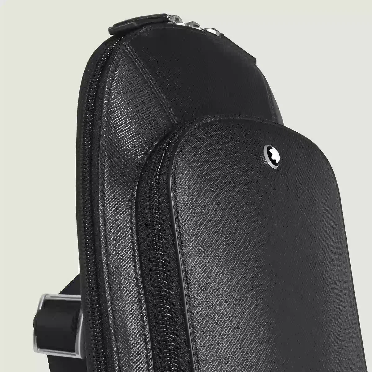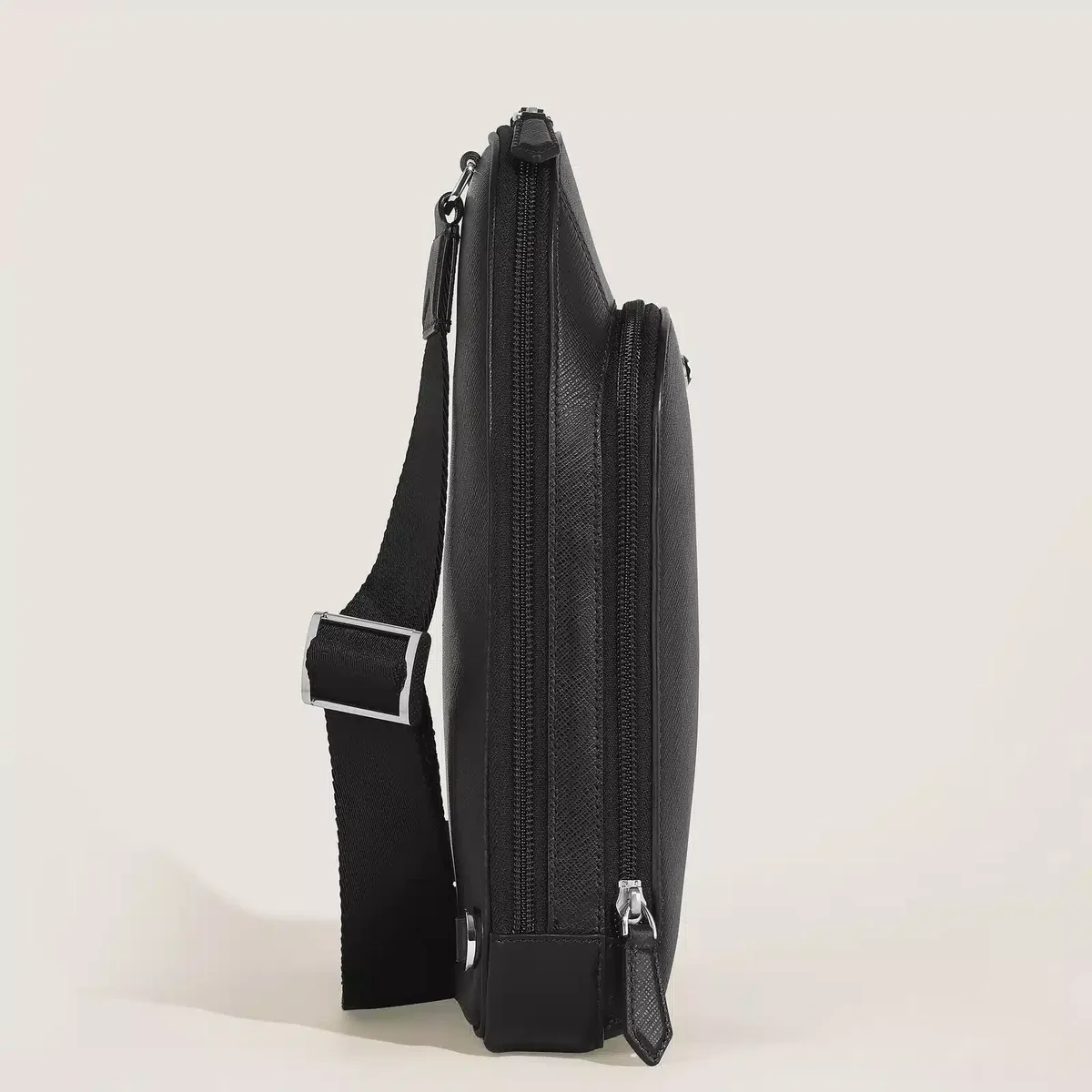 Den nya Sartorial-axelväskan, tillverkad av elegant svart Saffiano-präglat läder, ger din vardagslook en modern och avslappnad touch. Detta funktionella tillbehör har en säker dragkedja och en justerbar axelrem för komfort. Den har ett rymligt huvudfack, en innerficka med dragkedja för värdesaker och ytterfickor med dragkedja, tre öppna fickor och plats för tre kreditkort.